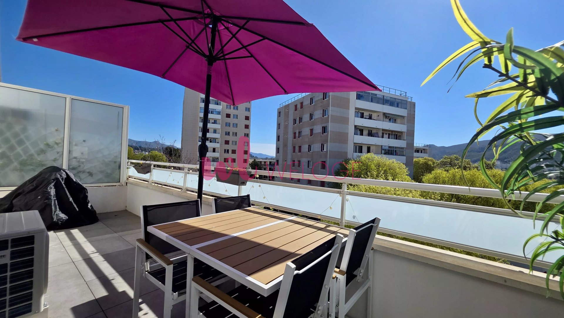 Entre la Fourragère et Les Caillols, dans une résidence de 2019, nichée en hauteur, au calme absolu, tout en étant proche des commerces, écoles et tramway.