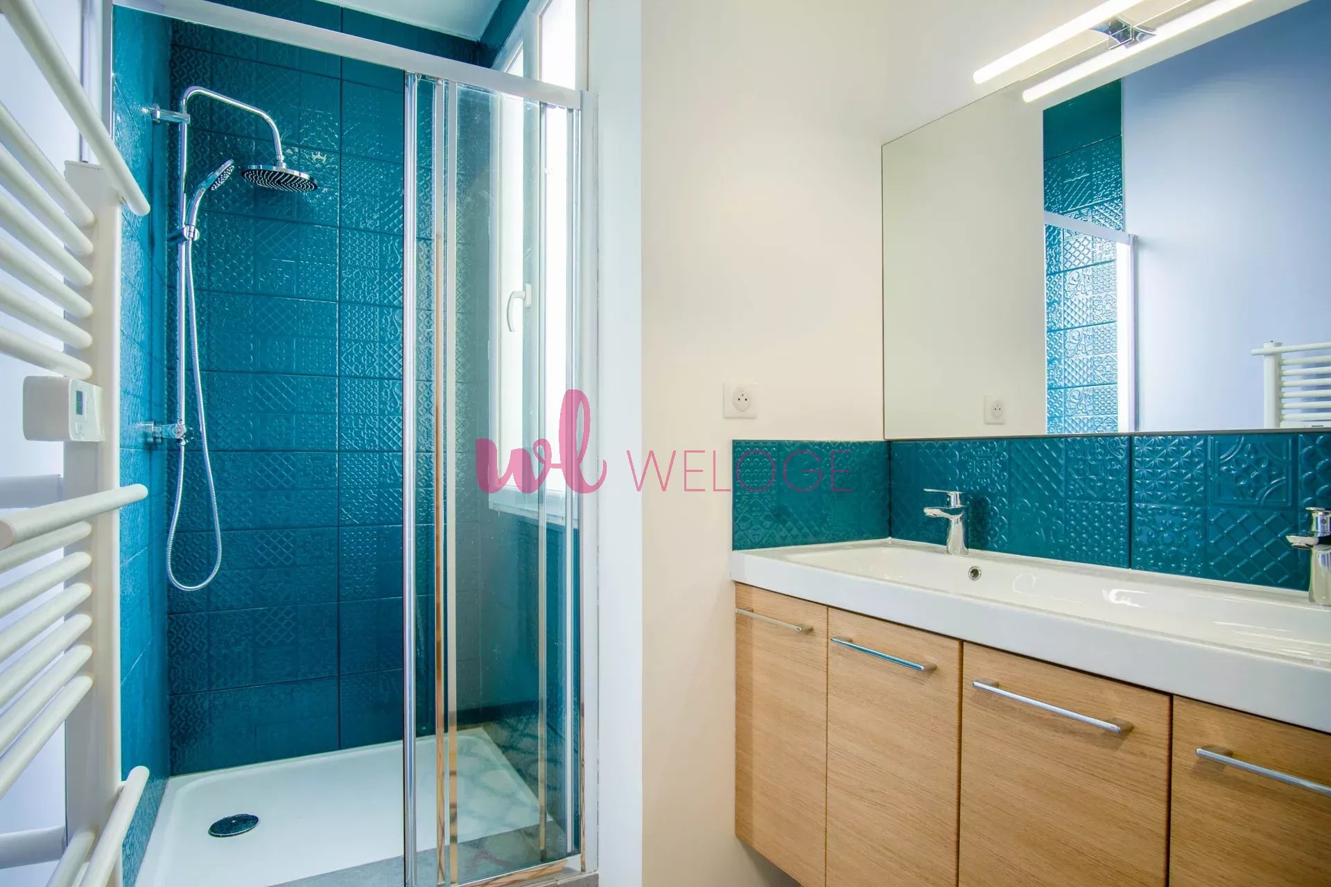 Une des chambres dispose de sa propre salle d’eau avec cabine de douche et WC entièrement privatifs.