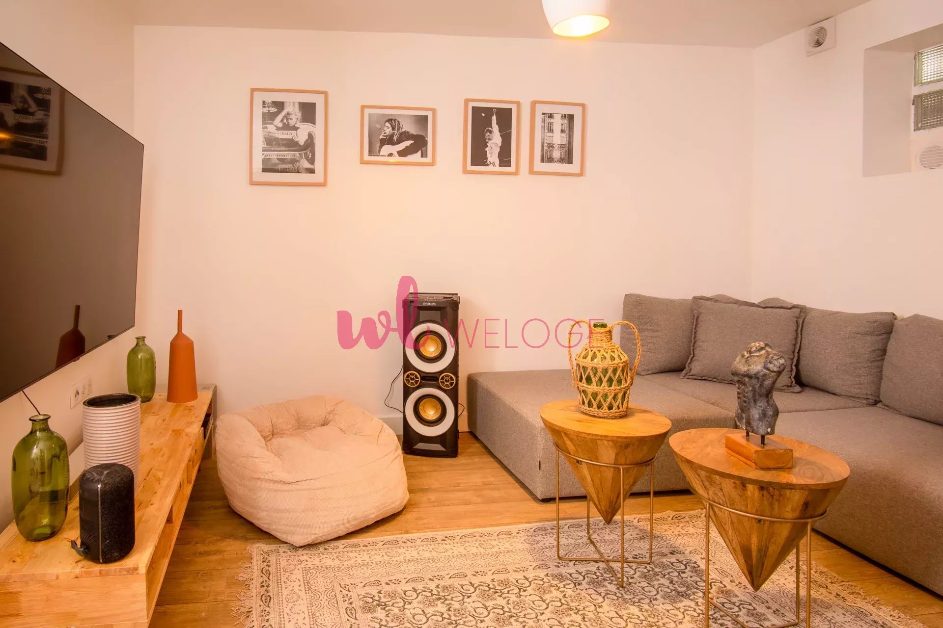 – Une salle de divertissement équipée d’un home cinema, et d’un grand canapé cosy pour se retrouver entre colivers