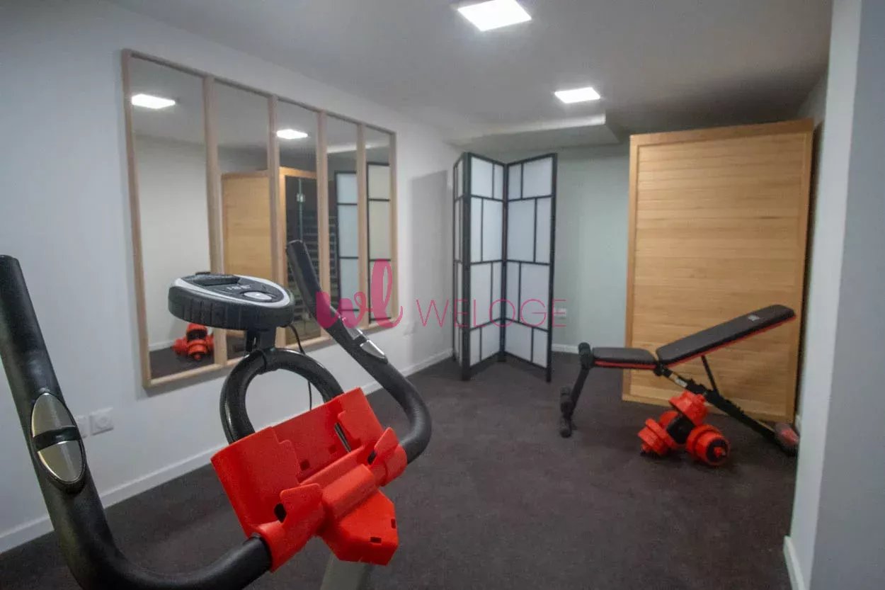 Équipements high-tech et domotique pour cette maison de 180 m2 transformée en coliving du 21e siècle. – 6 chambres, 5 salles d’eau, salle de sport avec sauna, salle de cinéma, terrasse panoramique… – Séjour, salle à manger, espace de télétravail, salle de musique… grâce au mobilier modulable permettant au moins 2 fonctions à chaque pièce commune Hors norme !