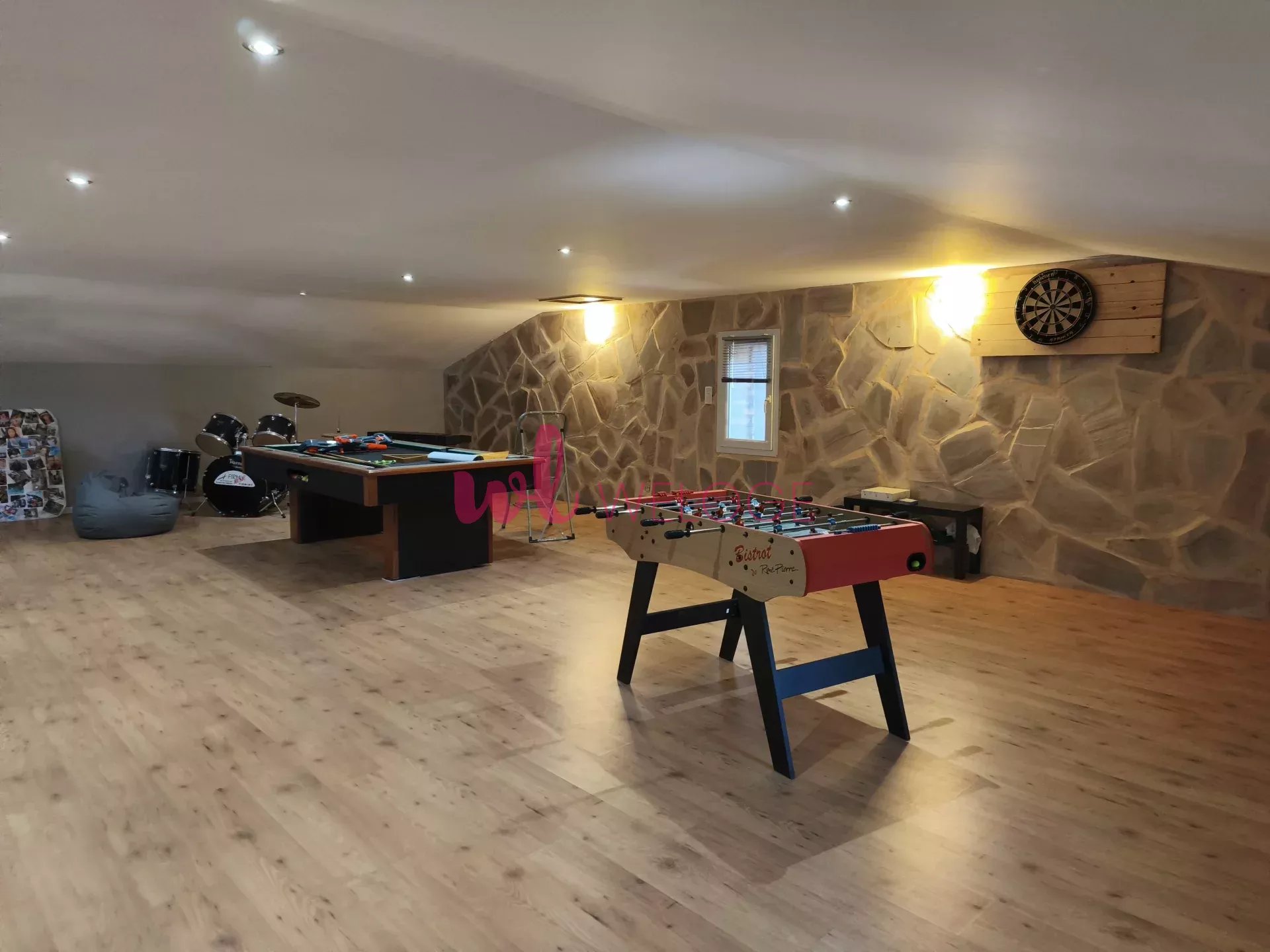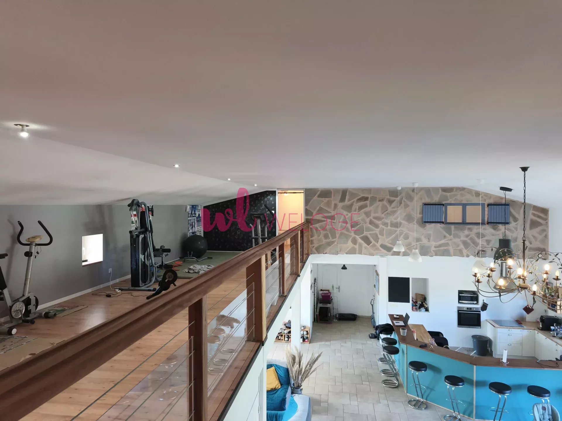 A l’étage, une splendide mezzanine de plus de 60m2, idéale pour créer un espace de jeux, de lecture, de sport ou bien d’autres loisirs.