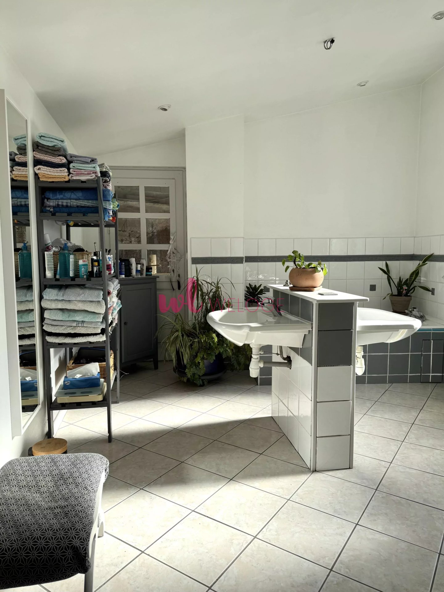 Édifiée sur trois niveaux, la maison se compose au rez-de-chaussée d’un séjour lumineux d’environ 33 m² ainsi que d’une spacieuse cuisine de plus de 22 m². Les espaces de vie sont généreux et offrent de nombreuses possibilités d’aménagement selon les besoins d’une famille.