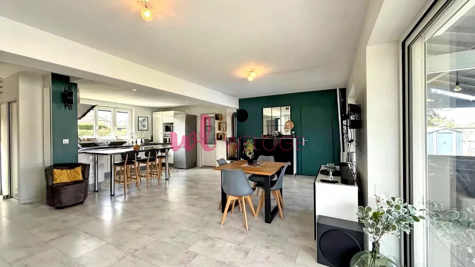 – Au rez-de-chaussée, vous serez séduit par une spacieuse pièce de vie traversante et baignée de lumière, agrémentée par de grandes baies vitrées offrant un accès direct à une terrasse abritée idéale pour vos moments de détente.