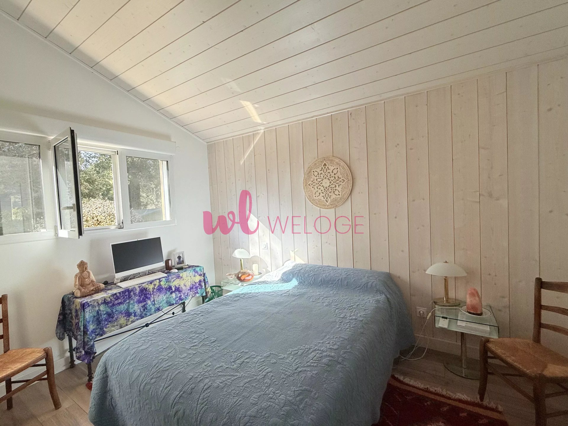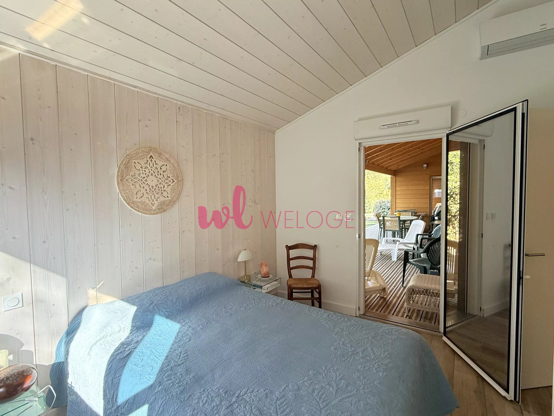 À l’extérieur, le charme opère immédiatement : vous profiterez d’un véritable écrin de nature avec une vue dégagée sur la forêt de pins et un accès direct pour vos balades. Deux terrasses, orientées nord et sud, vous permettent de savourer chaque moment de la journée selon vos envies d’ensoleillement ou de fraîcheur.