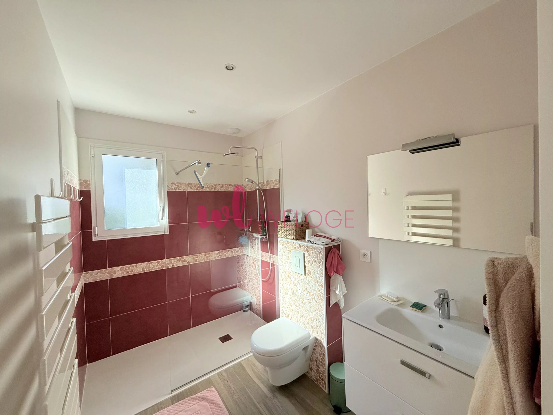 Dès l’entrée, un hall accueillant avec toilettes indépendantes dessert une superbe pièce de vie de plus de 60 m², baignée de lumière. Cet espace convivial réunit harmonieusement salon, salle à manger et cuisine ouverte entièrement équipée. Un cellier-buanderie attenant vient compléter l’ensemble pour un confort quotidien optimal.