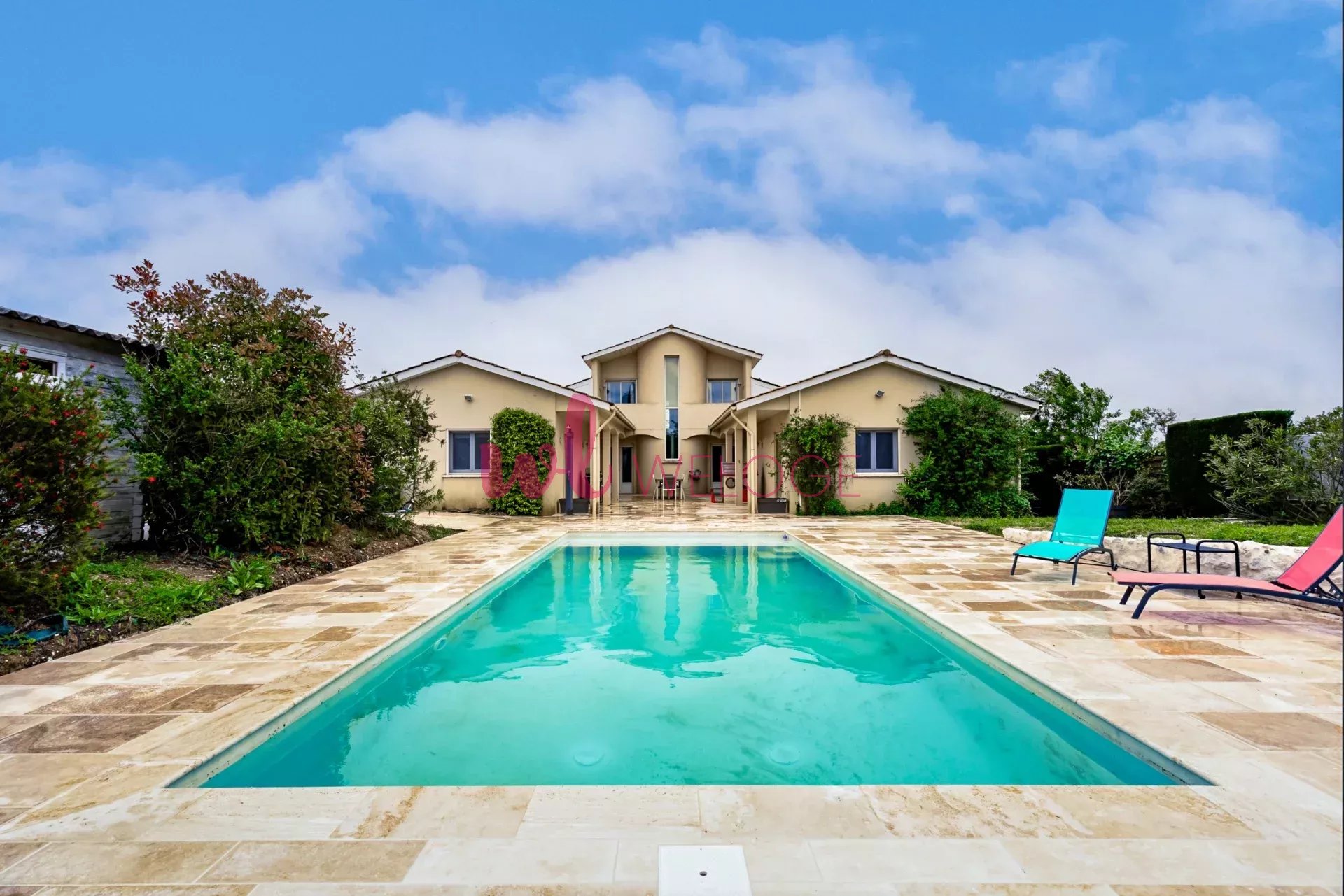 Située à seulement 15 minutes de Bordeaux. cette superbe maison d’architecte de 280 m². nichée dans un cadre verdoyant à Sainte-Eulalie. est un véritable havre de paix. Posée sur un terrain paysagé de 1600 m². elle dispose d’une piscine moderne et d’une spacieuse terrasse parfaite pour les moments de détente en extérieur.
