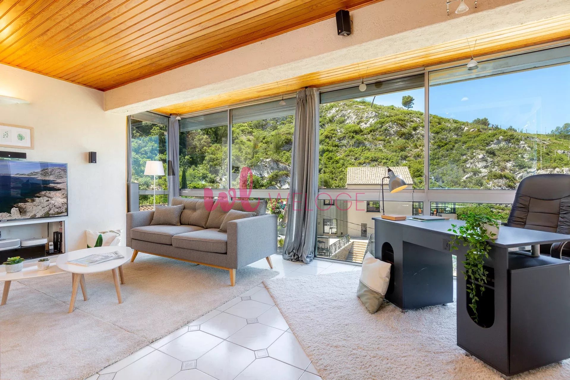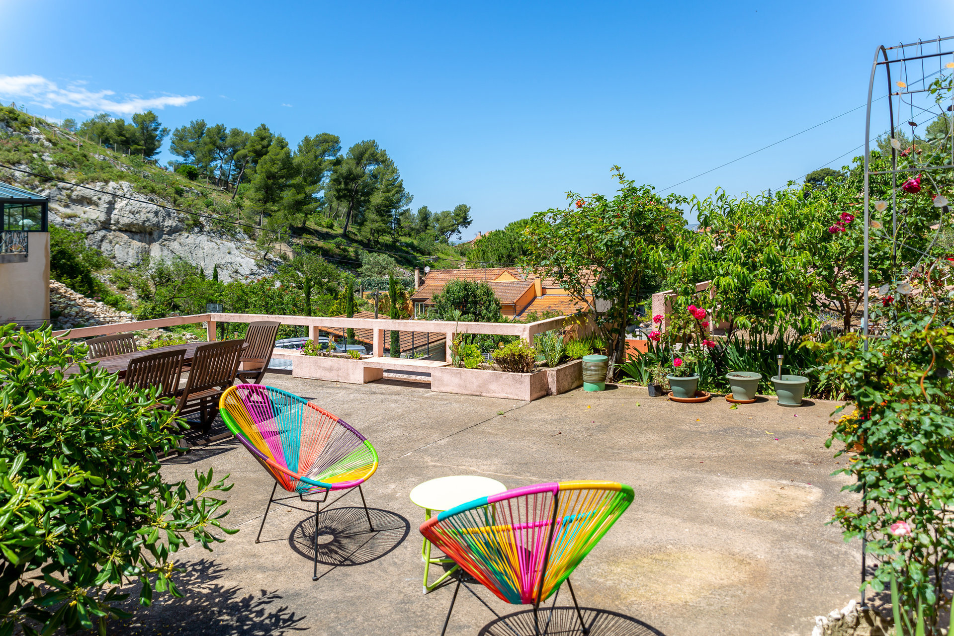Votre agent Weloge vous propose à la vente Marseille 10ème, quartier SAINT LOUP – LES TROIS PONTS, à flanc de collines, (zone rouge) une maison au calme absolu offrant une vue panoramique sur les collines et la ville avec jardin en restanques, terrasses, piscine, garage et studio indépendant. Au niveau de l’impasse se trouvent le garage, le studio indépendant donnant sur la piscine. Au niveau supérieur une magnifique terrasse/jardin, au dernier niveau l’habitation principale offrant un séjour avec cuisine us, un salon, deux chambres, un dressing, une salle de bain avec toilettes, une buanderie. Une pièce de 10 m2 avec accès indépendant complète les atouts de cette maison de charme. Vous serez séduits par sa vue, ses extérieurs qui vous permettront de profiter de la quiétude des lieux. Pour les amoureux de la nature tout étant très proche de toutes les commodités. UNIQUE ! Cette maison n’est pas adaptée aux personnes à mobilité réduite.