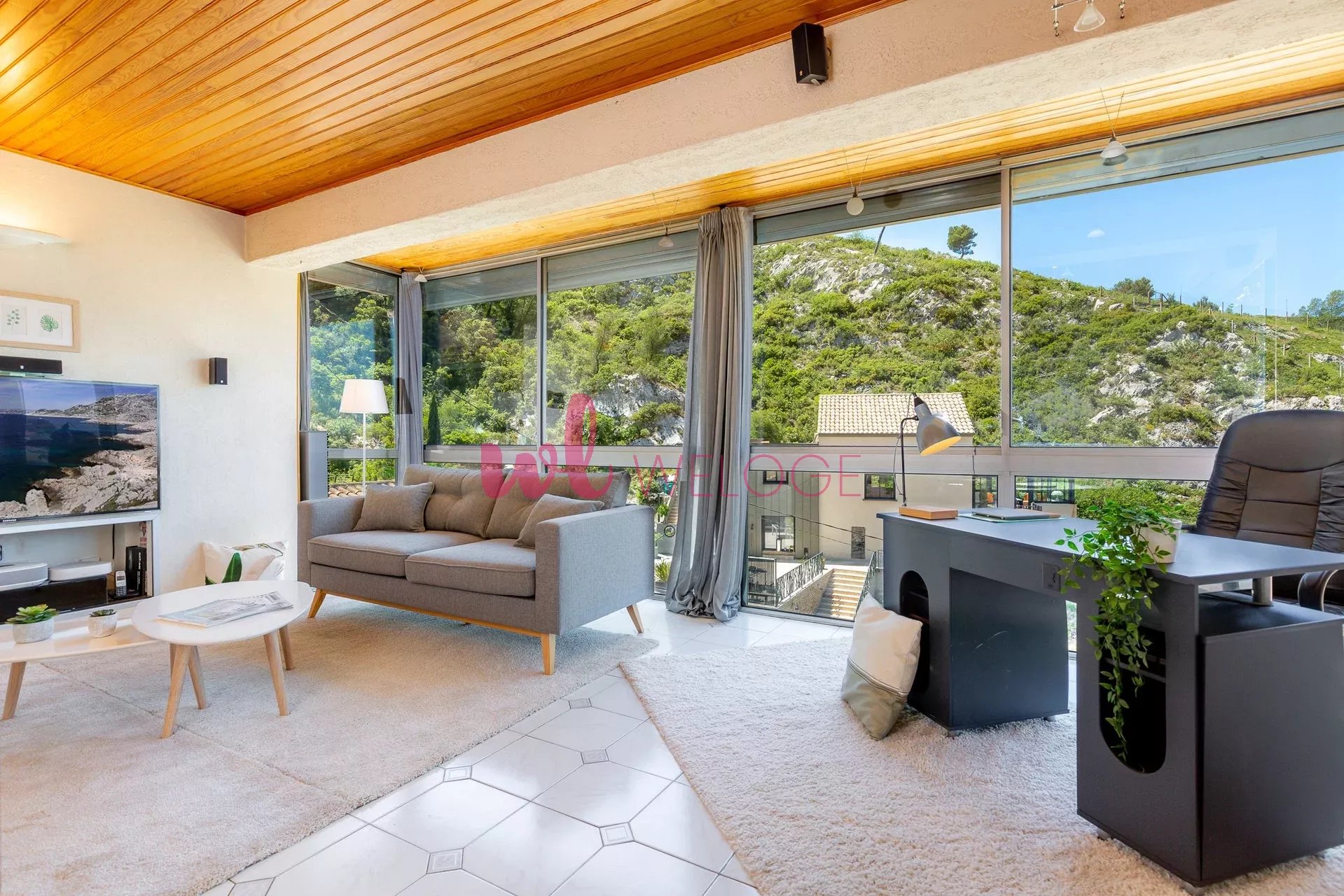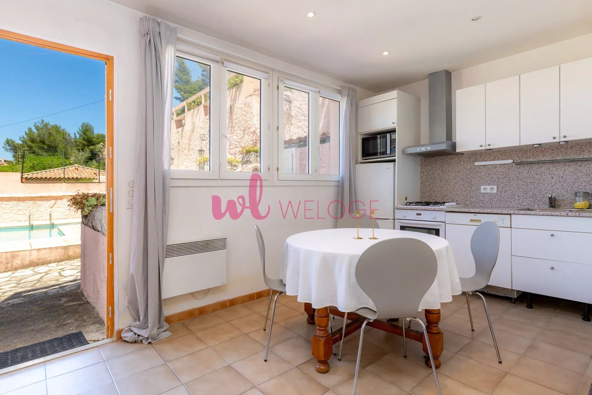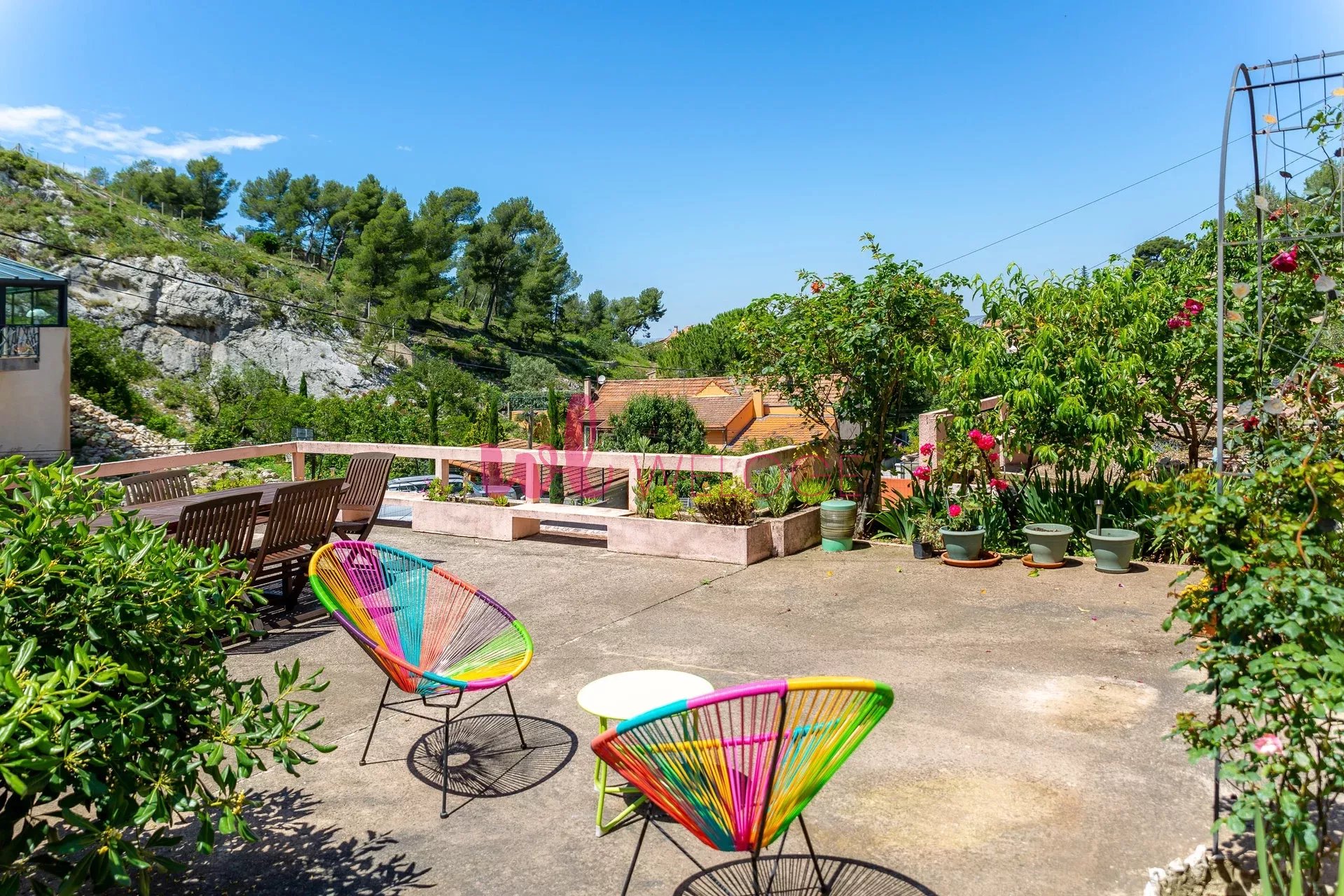 Votre agent vous propose à la vente Marseille 10ème, quartier SAINT LOUP – LES TROIS PONTS, à flanc de collines, (zone rouge) une maison au calme absolu offrant une vue panoramique sur les collines et la ville avec jardin en restanques, terrasses, piscine, garage et studio indépendant. Au niveau de l’impasse se trouvent le garage, le studio indépendant donnant sur la piscine. Au niveau supérieur une magnifique terrasse/jardin, au dernier niveau l’habitation principale offrant un séjour avec cuisine us, un salon, deux chambres, un dressing, une salle de bain avec toilettes, une buanderie. Une pièce de 10 m2 avec accès indépendant complète les atouts de cette maison de charme. Vous serez séduits par sa vue, ses extérieurs qui vous permettront de profiter de la quiétude des lieux. Pour les amoureux de la nature tout étant très proche de toutes les commodités. UNIQUE ! Cette maison n’est pas adaptée aux personnes à mobilité réduite.