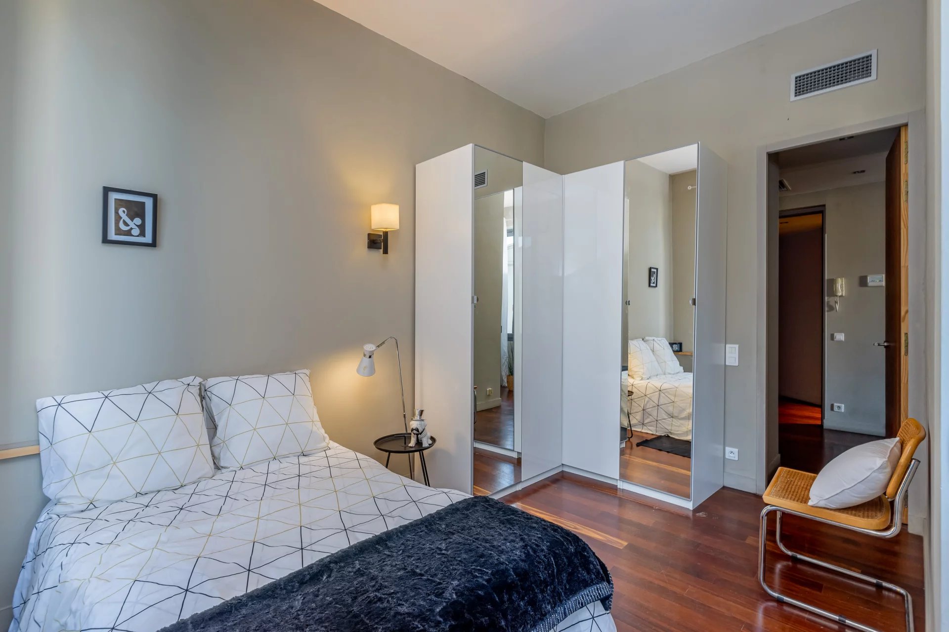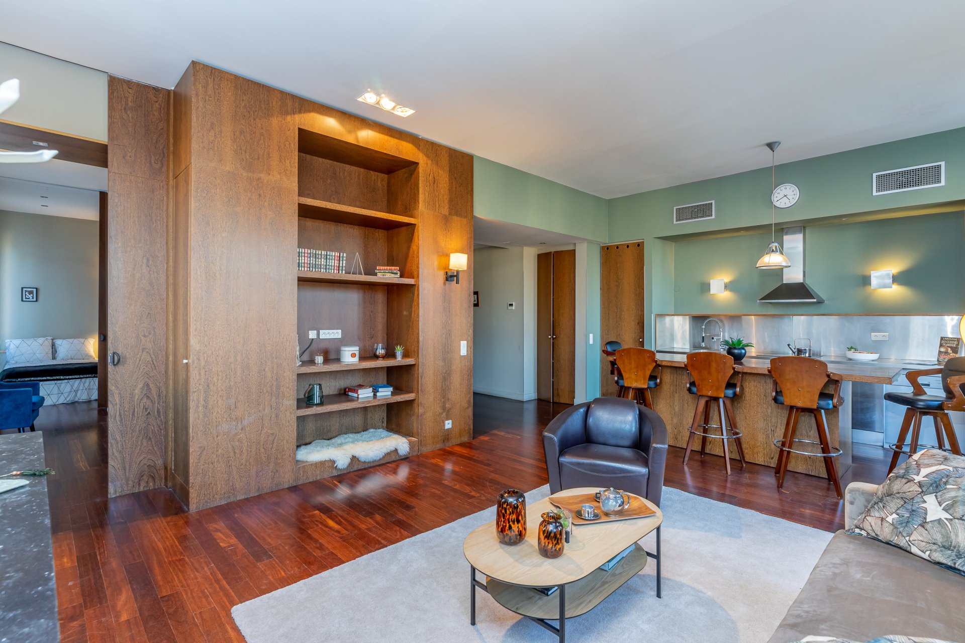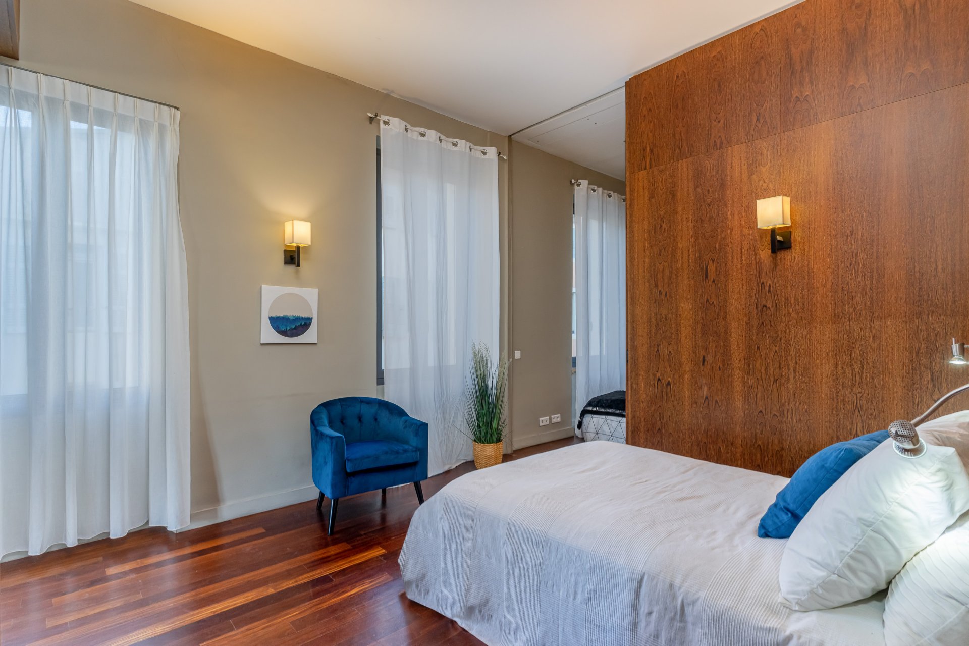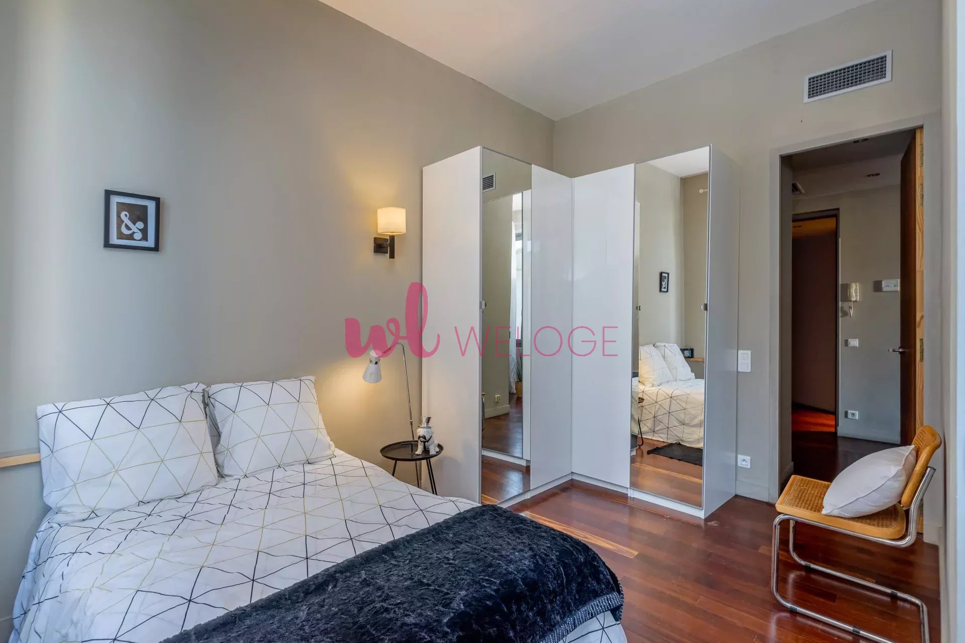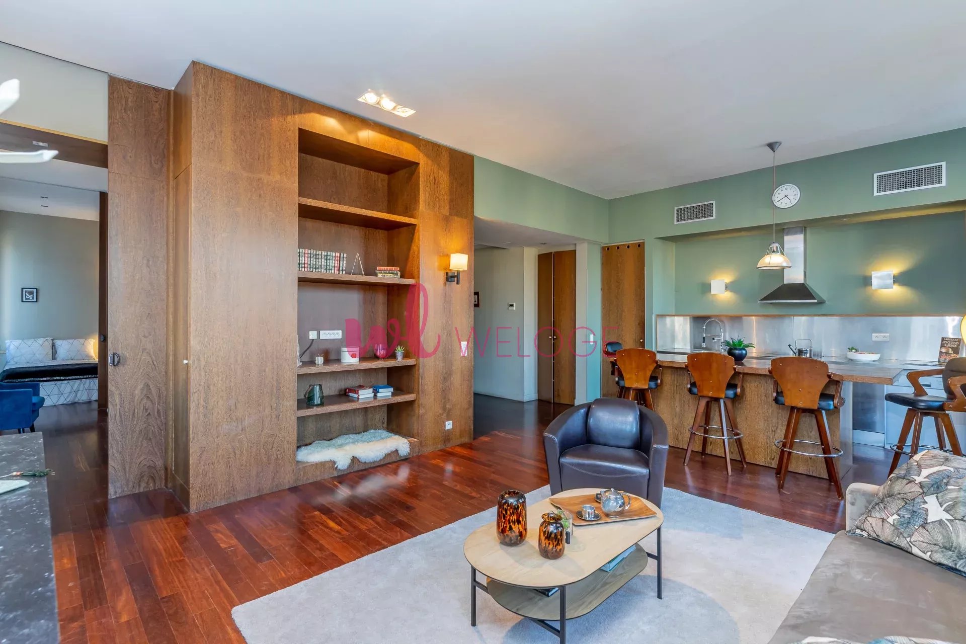 L’appartement trois pièces se compose d’un séjour 5 fenêtres de 40 m2 avec son espace cuisine ouvert offrant vue dégagée, cheminée en marbre, haut plafond, parquet merbau, rangement fait sur mesure, deux chambres indépendantes et pouvant aussi communiquer entre elles, une salle de bain double vasque, des toilettes indépendantes, un dégagement aménagé avec des rangements intégrés.