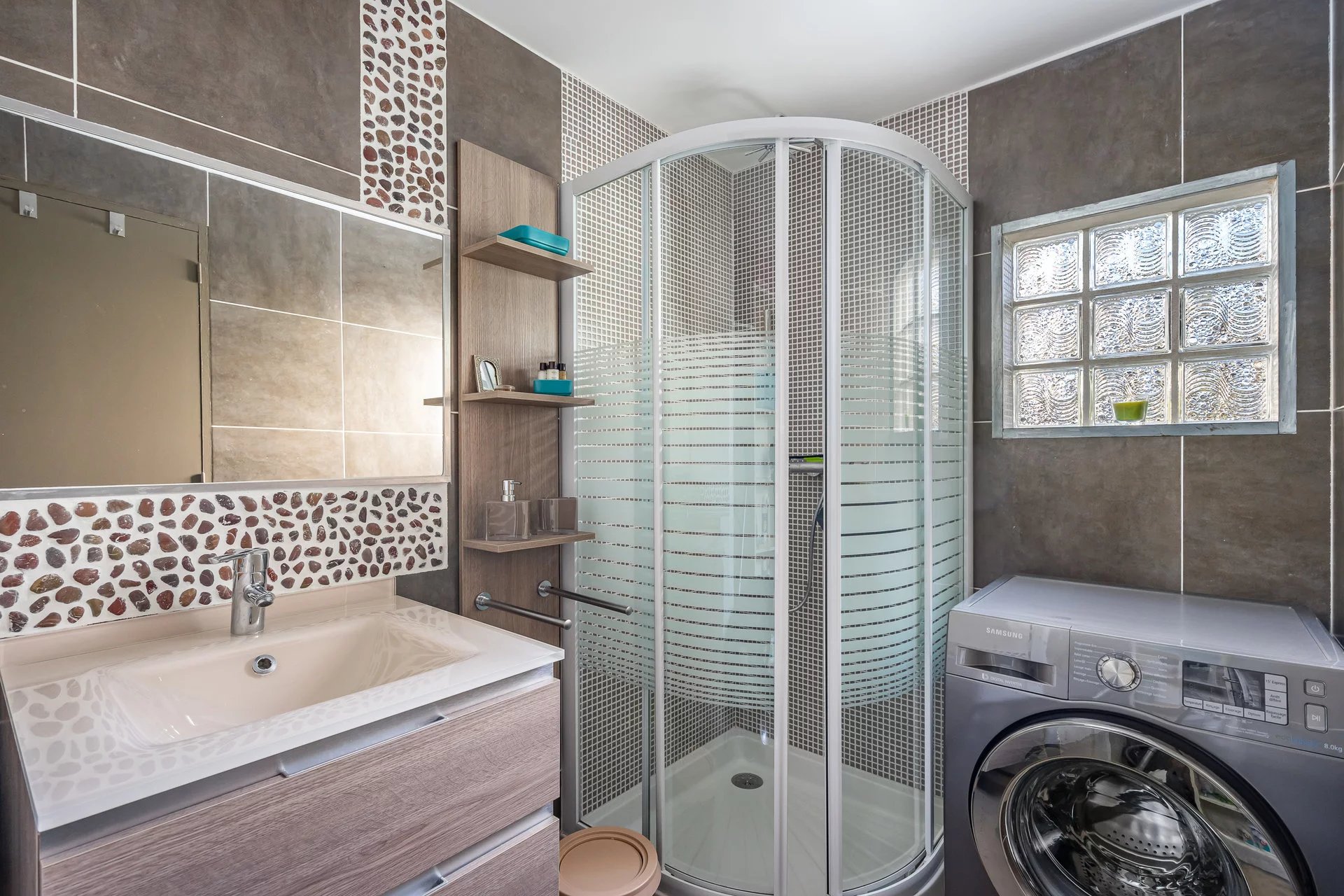 L’ATOUT de cette maison est aussi son STUDIO INDEPENDANT moderne,bien isolé, chauffage au sol, avec cuisine, sdb et wc séparé.