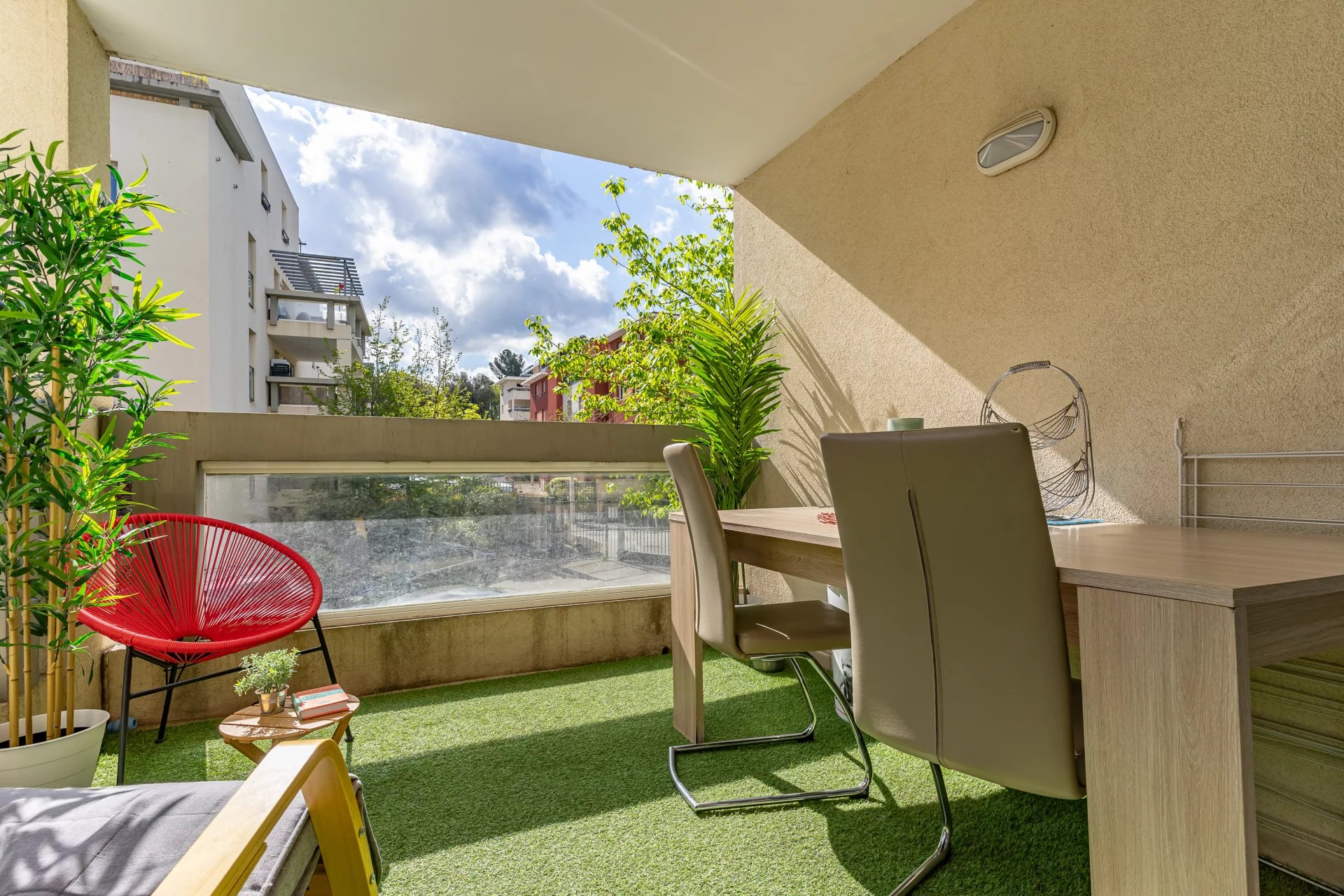 Cet appartement fonctionnel possède également une magnifique terrasse ensoleillée orientée Sud Est et agréable de plus de 8m²