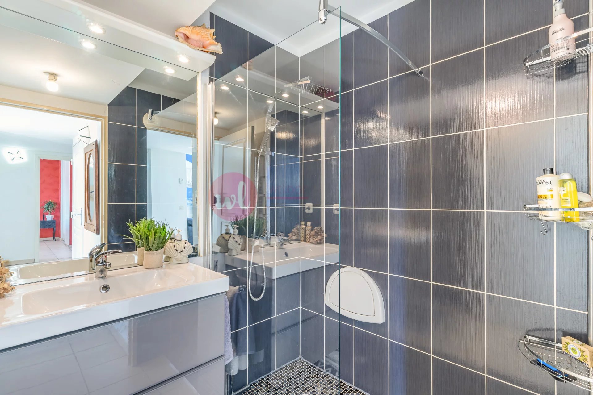 Il se compose également d’une salle d’eau avec douche à l’italienne et de toilettes indépendantes. Parfaitement agencé avec de grands placards de rangements, la climatisation réversible et le double vitrage complètent les atouts de ce bien.
