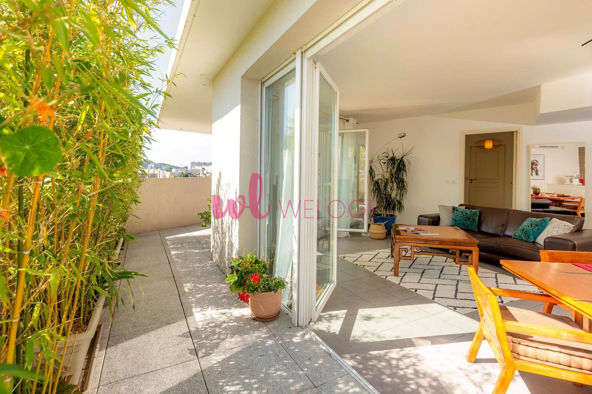 SOUS COMPROMIS – votre agent Weloge vous propose en exclusivité à la vente un appartement 3 pièces de 74,50 m2 parfaitement agencé, atypique entouré de ses deux grandes terrasses avec vue panoramique.