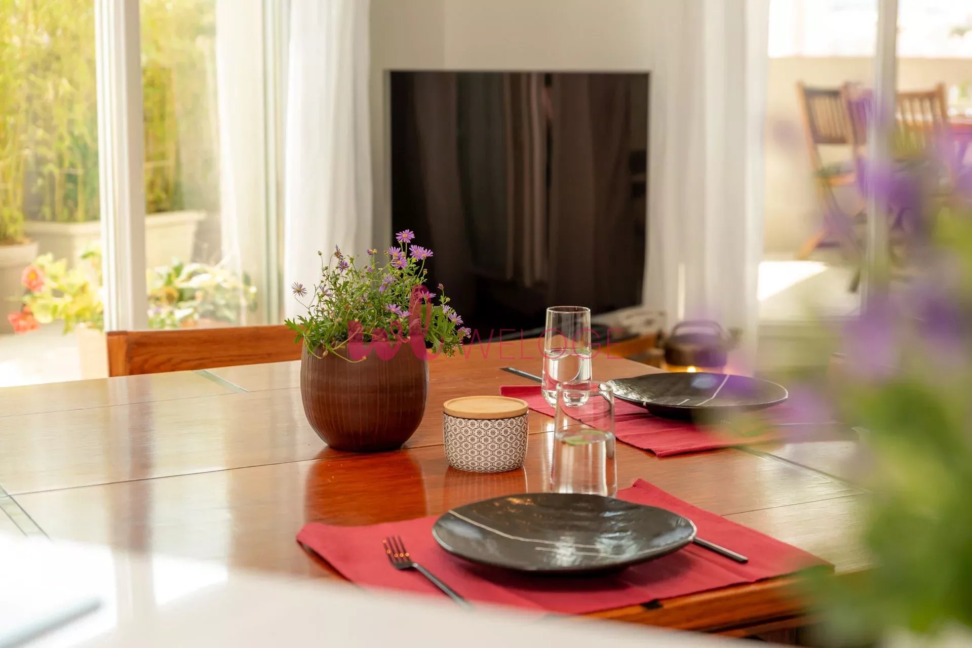 Véritable havre de paix au dessus d’un parc privé, écrin de verdure en plein centre ville, à deux pas de toutes les commodités.