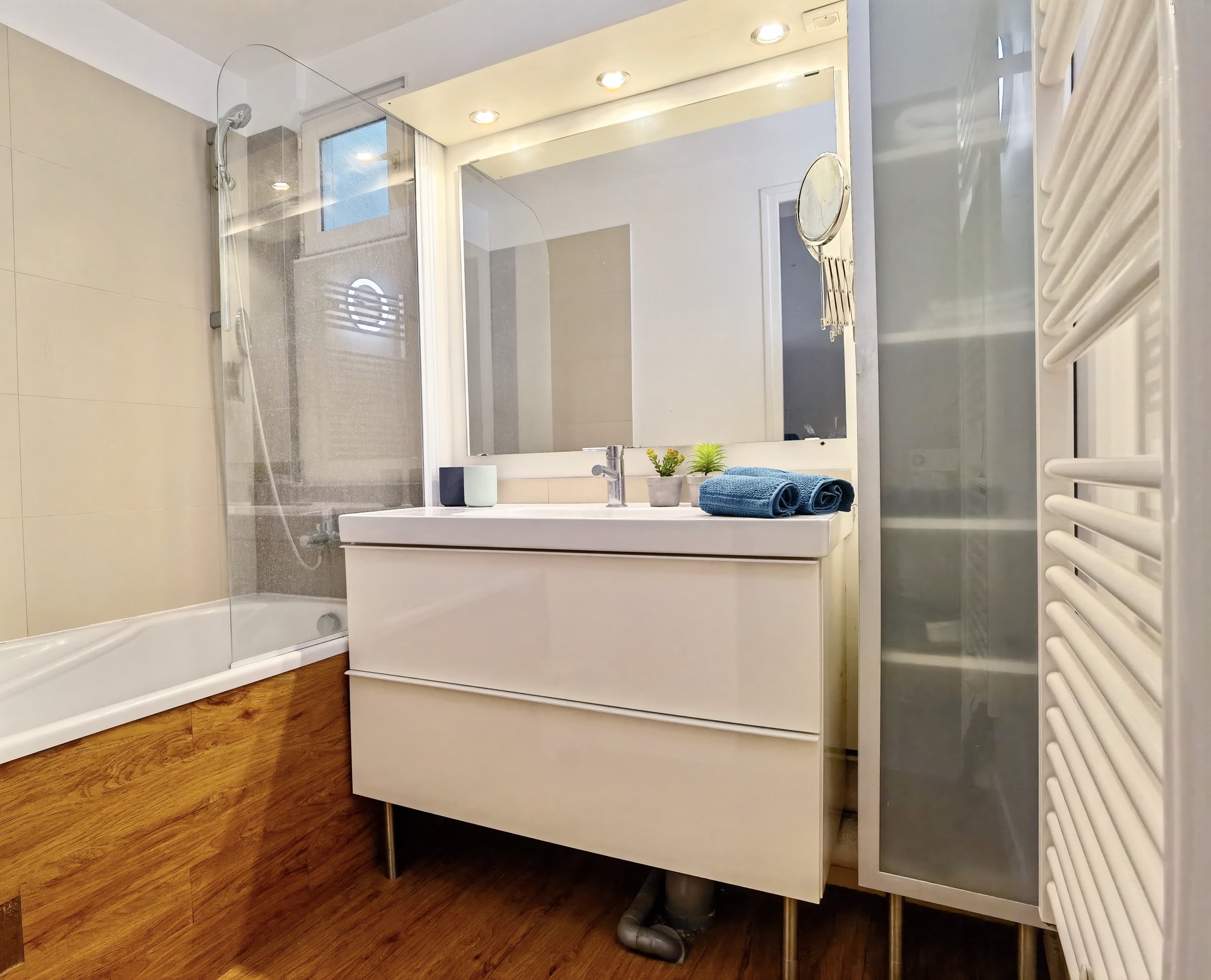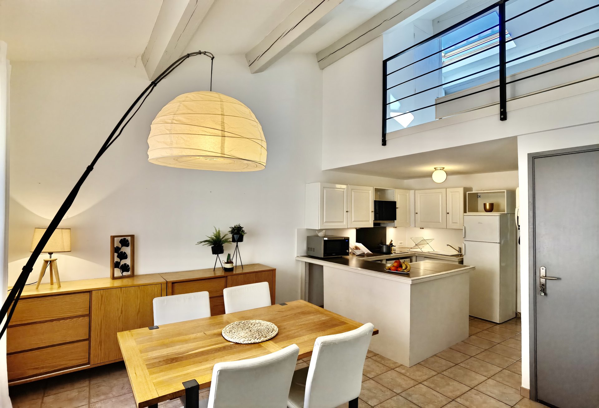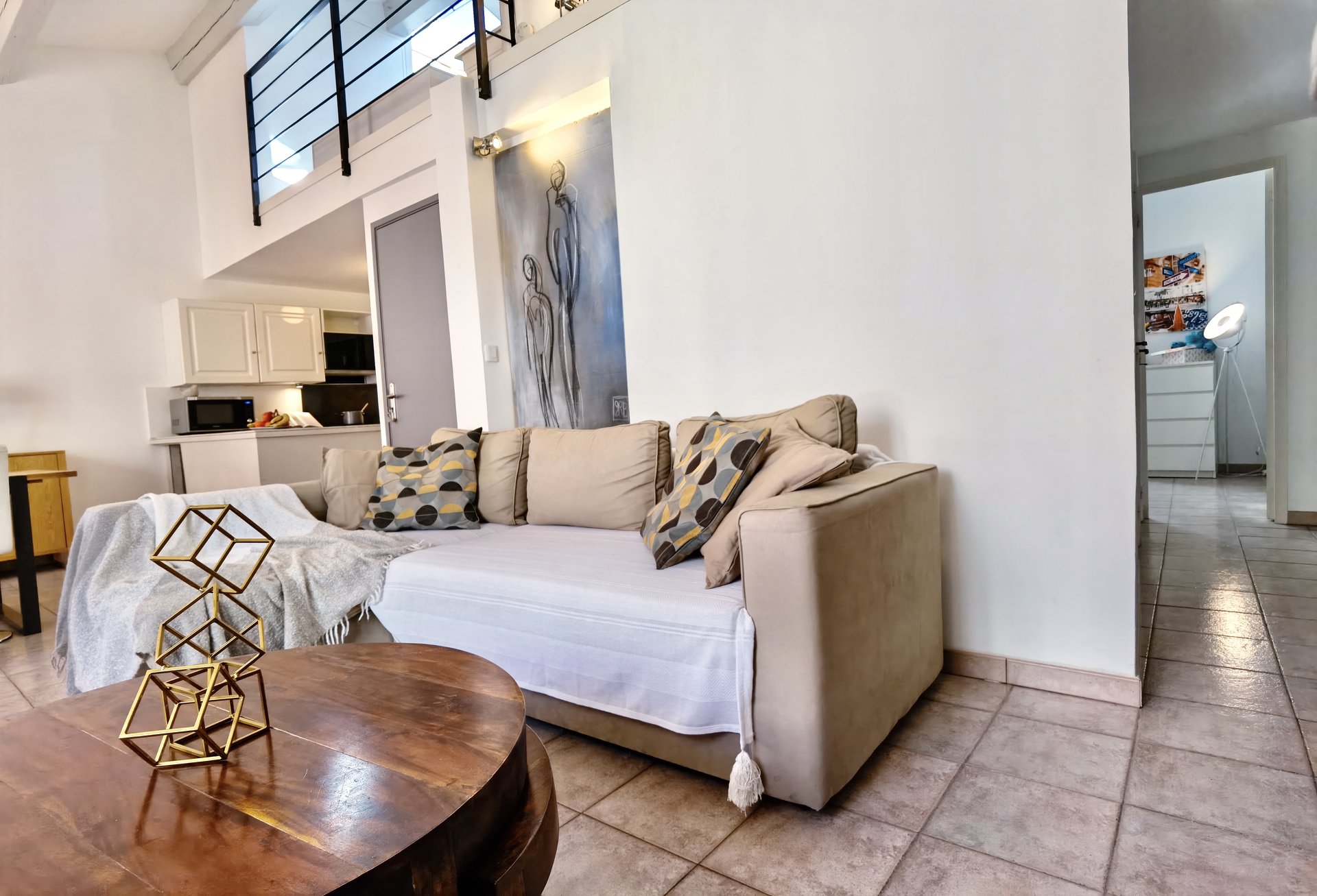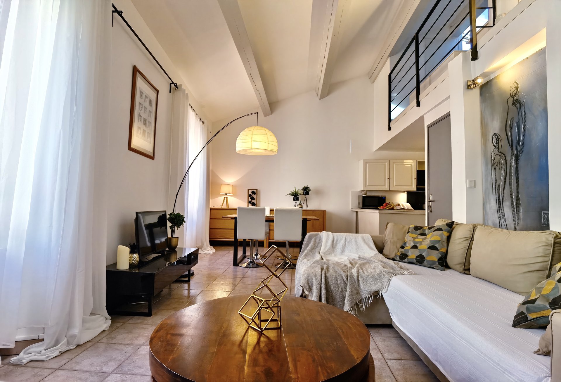L’appartement traversant baigné de lumière, est en plein coeur de Bandol, à deux pas du port.