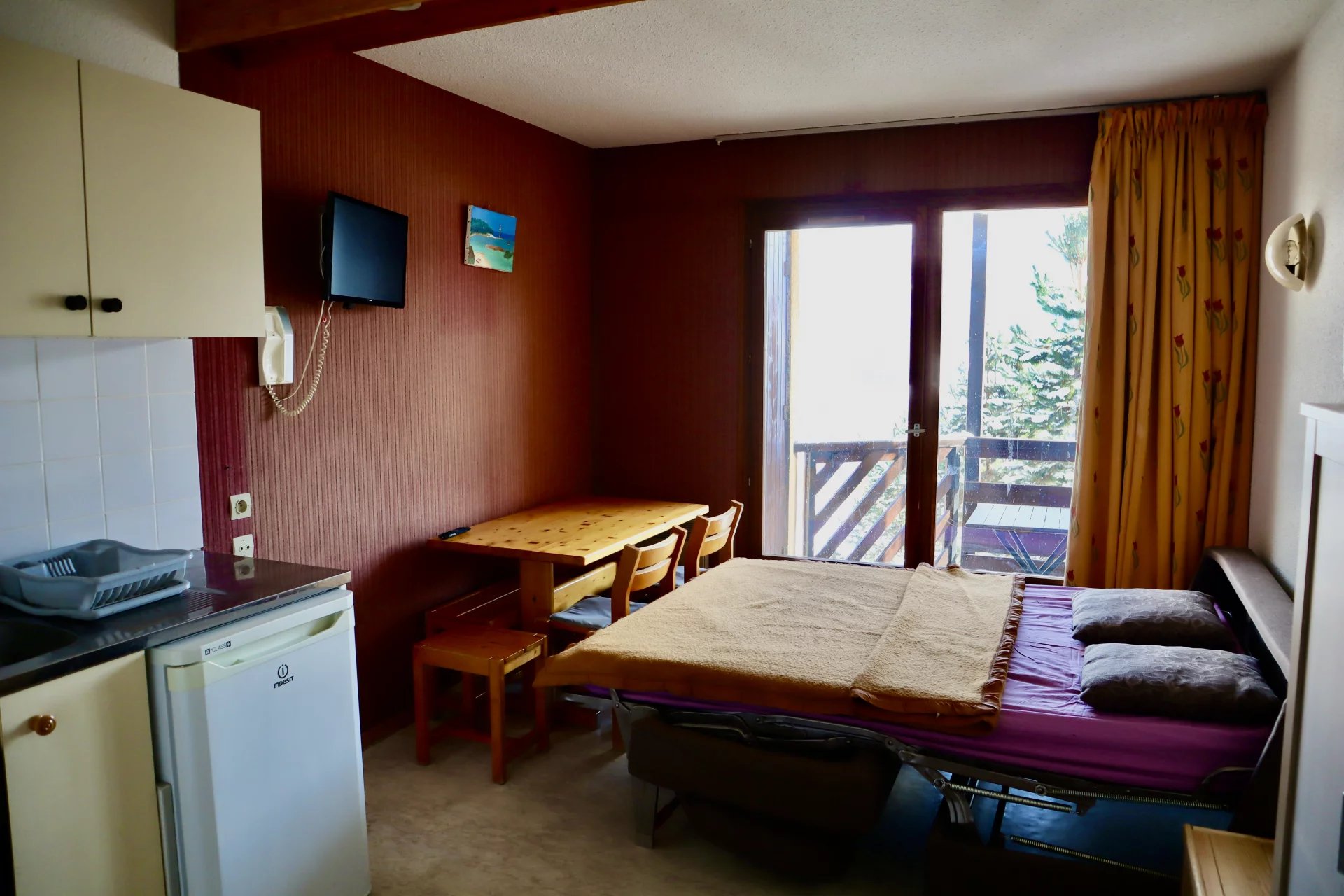 Un appartement T1 bis d’environ 24m2 bien agencé, composé d’un hall d’entrée avec rangements, une chambre avec lits superposés (3 couchages possible), une salle de bain et un wc séparé