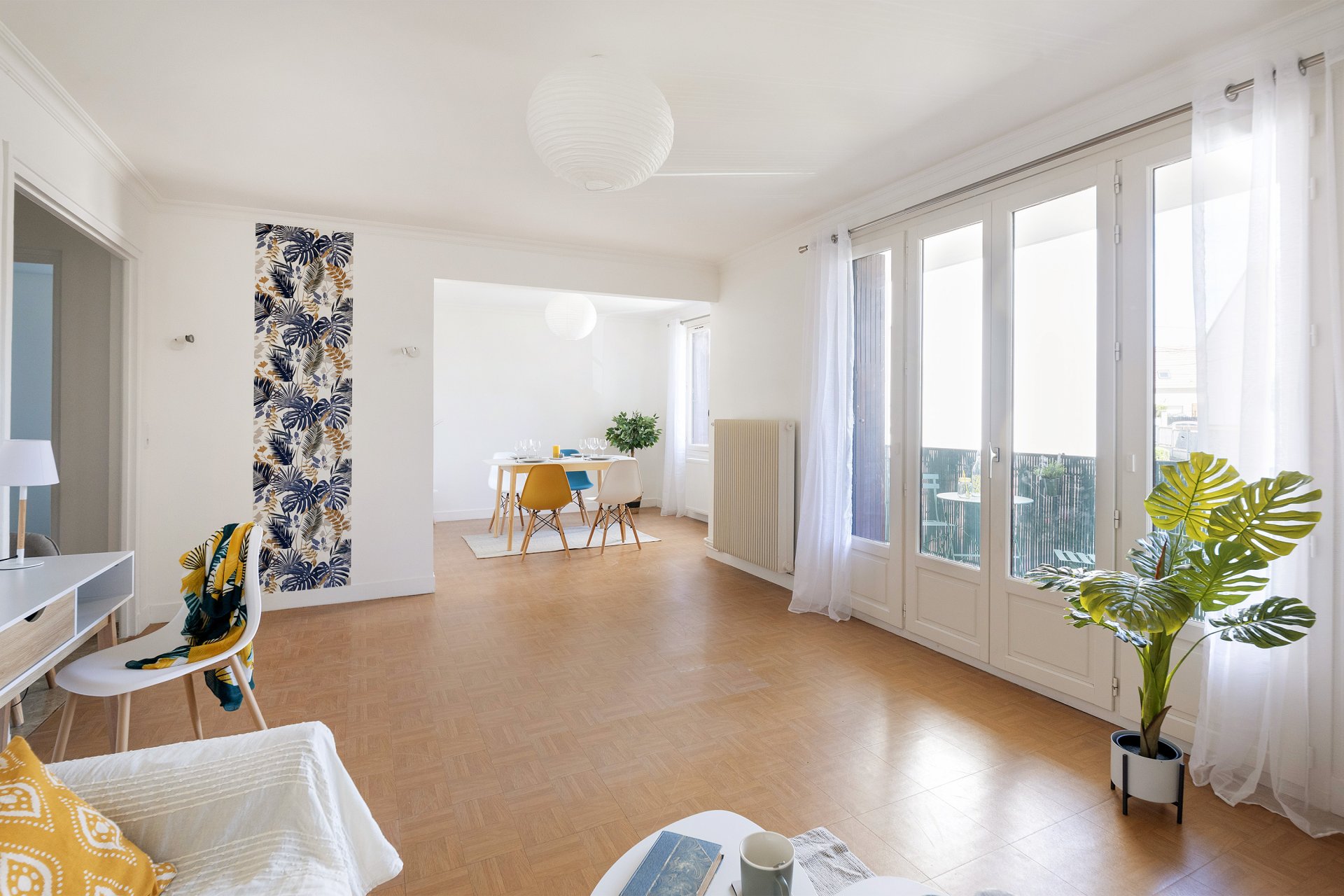 – d’un double séjour de presque 30 m2 qui donne accès au balcon de 8m2