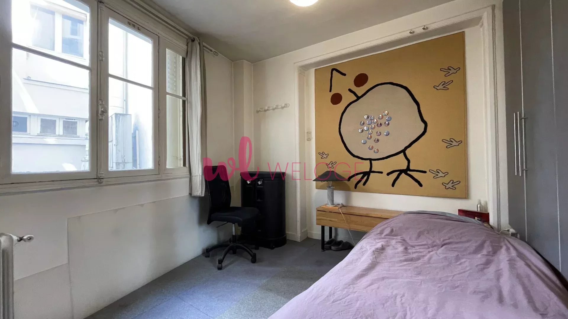 Au 1er étage d’un immeuble haussmannien, il se compose actuellement d’une chambre sur cour intérieure, d’une pièce de vie cuisine/salon, d’une autre pièce pouvant servir de chambre ou bureau, d’une salle de bain avec fenêtre et d’un WC séparé.
