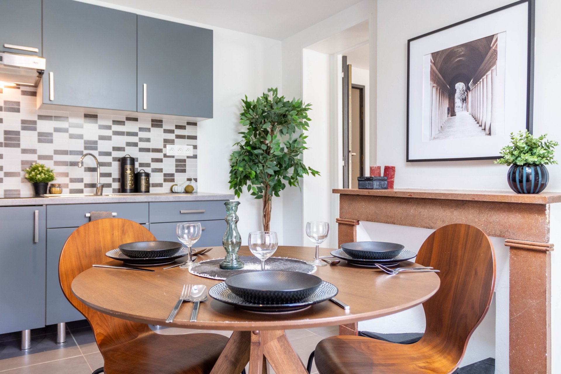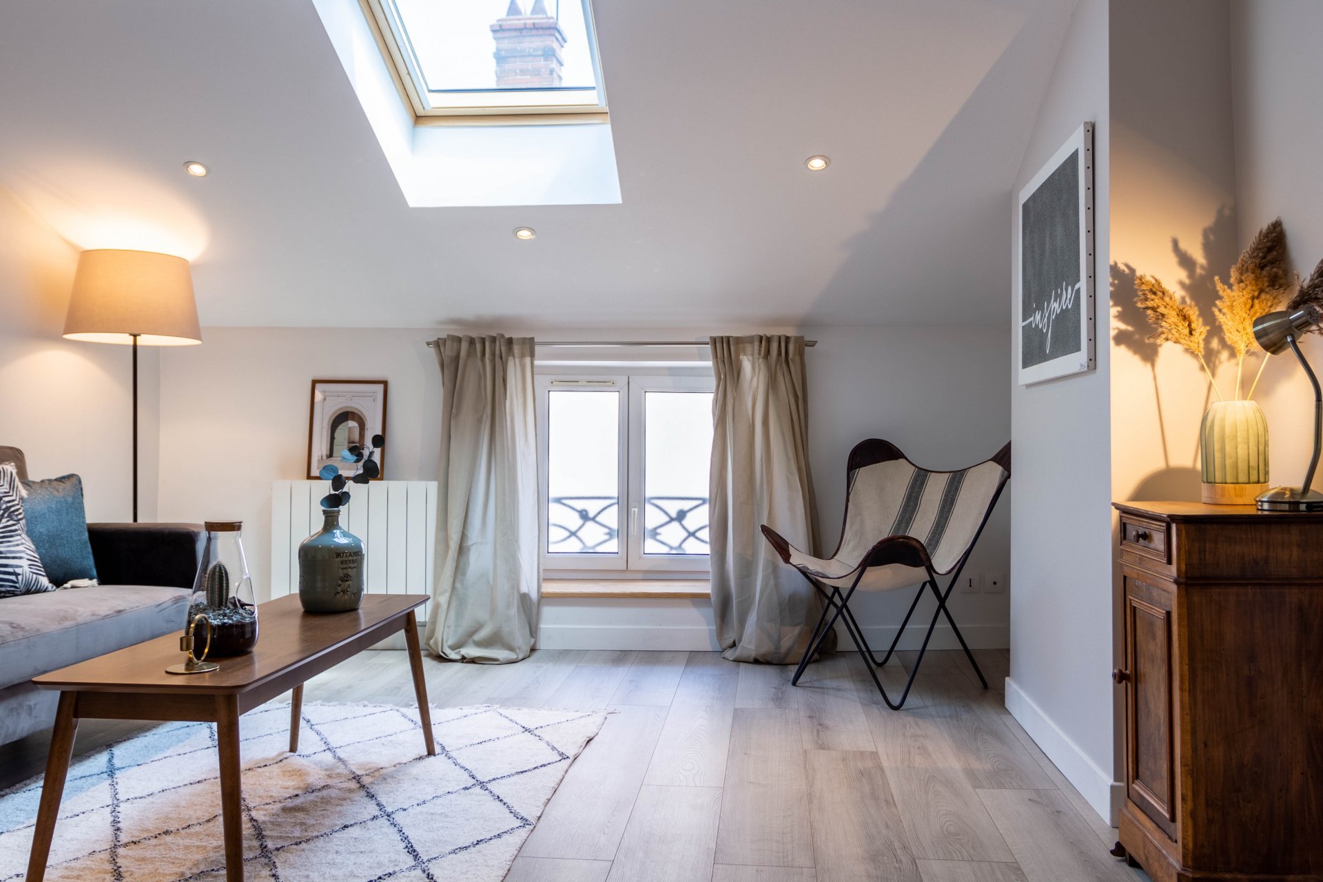 Au 2ème étage et sans ascenseur dans une ancienne bâtisse, vous serez séduits par son cachet et son calme. L’accès se fait par une jolie cour intérieure.