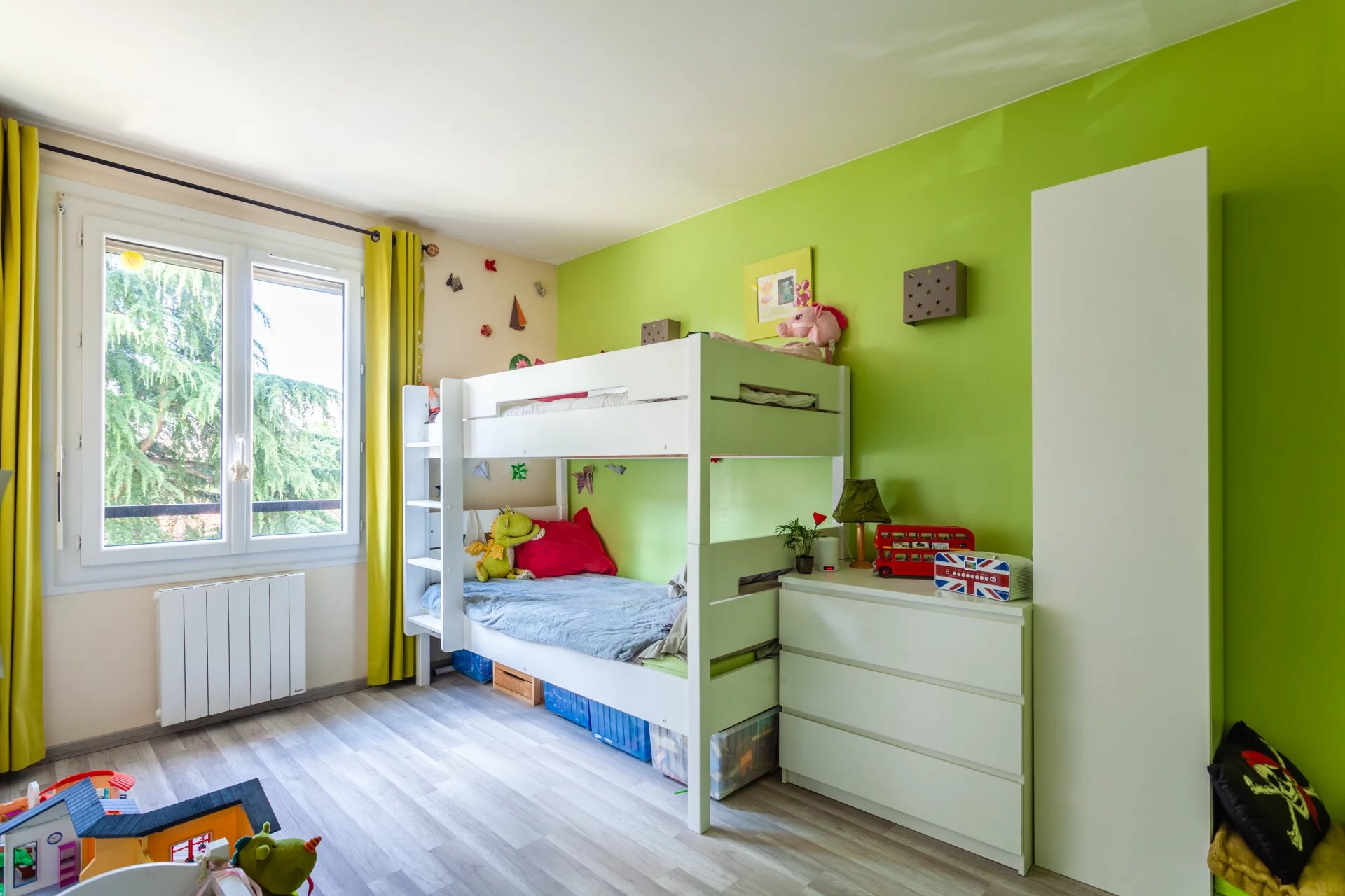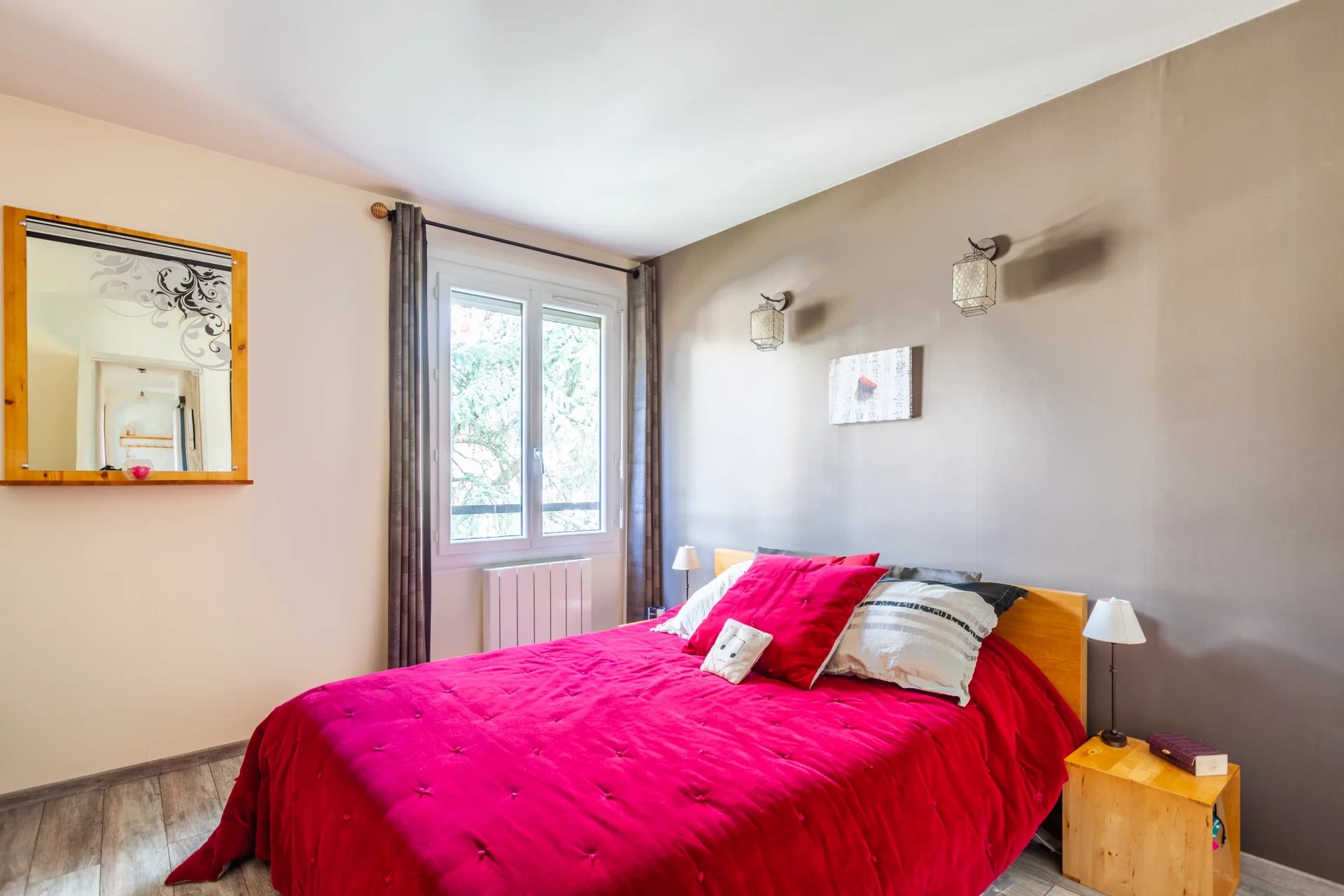 Vers le coin nuit, vous trouverez un toilette, une salle d’eau avec fenêtre, puis 2 jolies chambres de 11m² et 12m². Possibilité de faire une 3ème chambre au besoin.