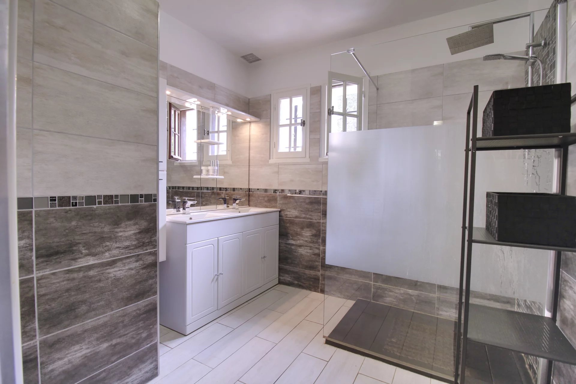 La villa offre également de nombreux espaces de rangements (buanderie, penderie, cellier) ainsi qu’un garage.