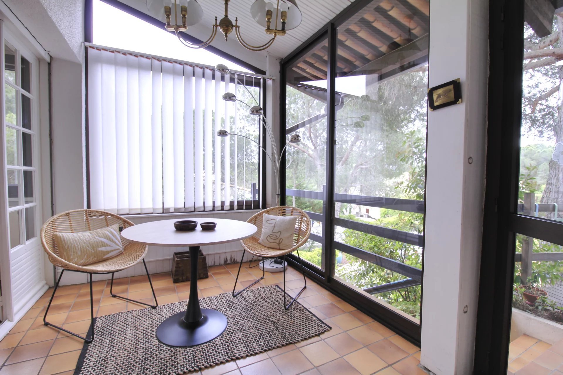 Dès l’entrée, une véranda baignée de lumière vous invite à profiter d’un moment de douceur avec vue sur la piscine ainsi que sur le jardin Japonais.