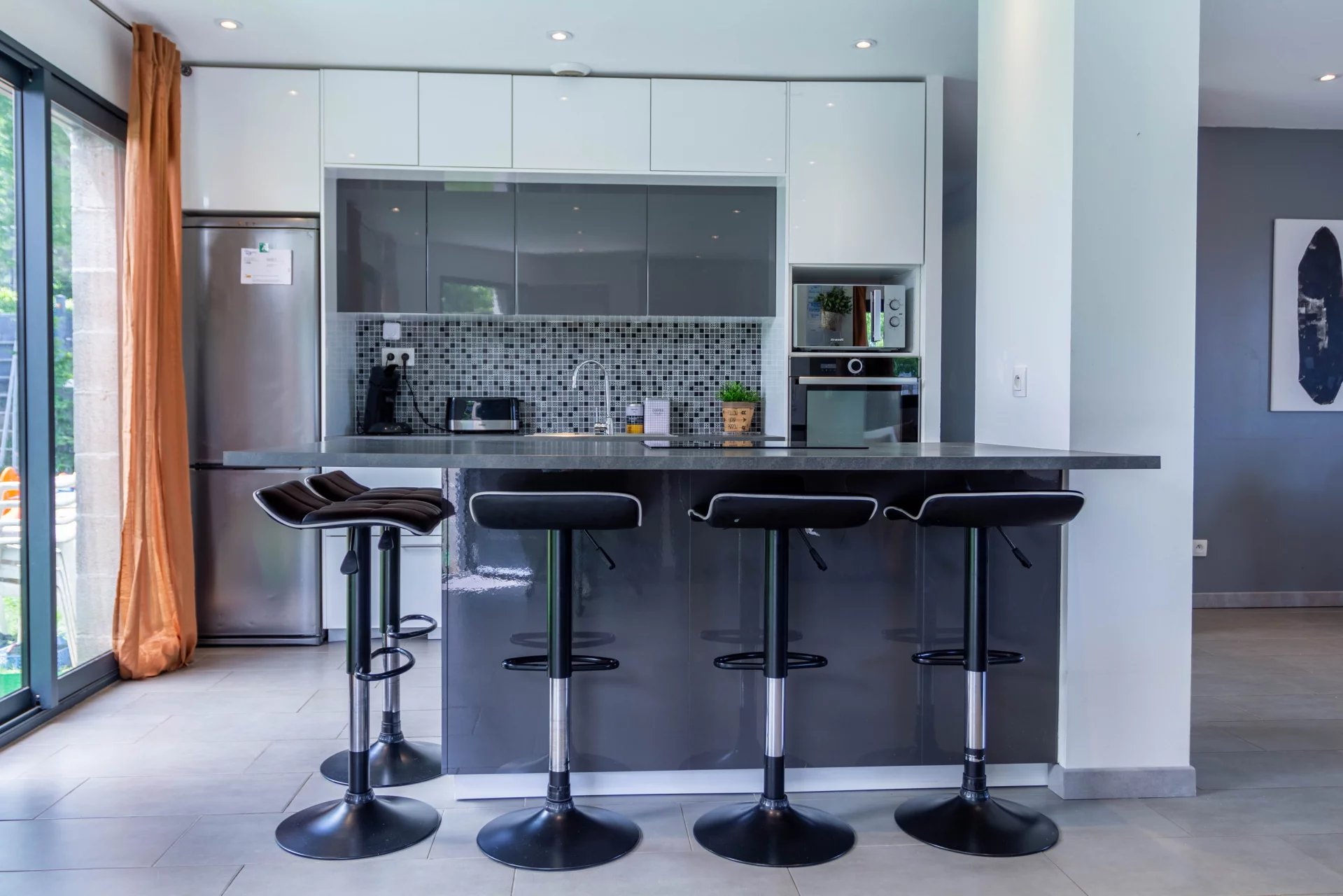 Dans le prolongement de cette agréable pièce de vie, vous apprécierez le jardin en accès direct.