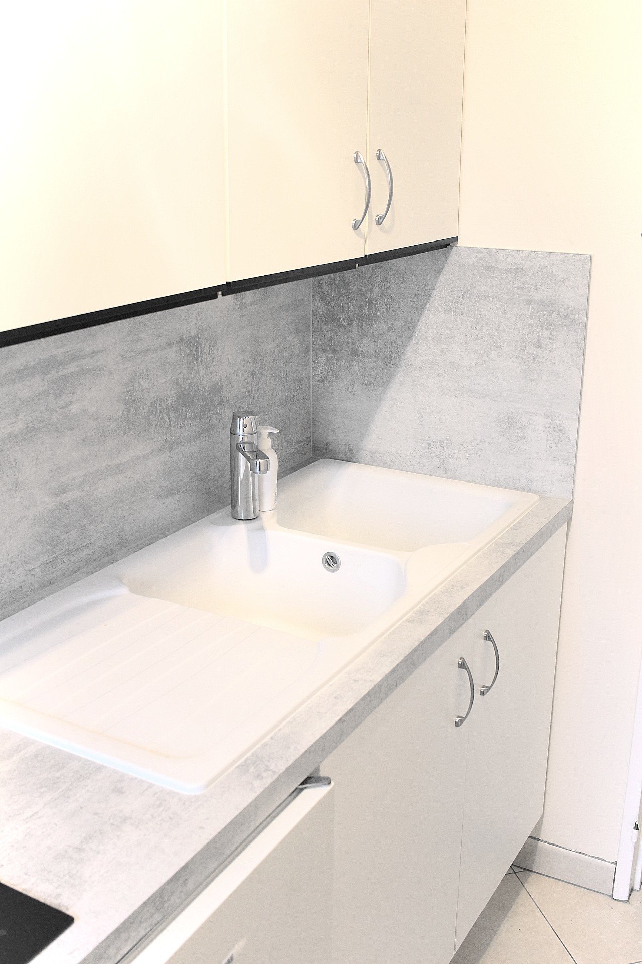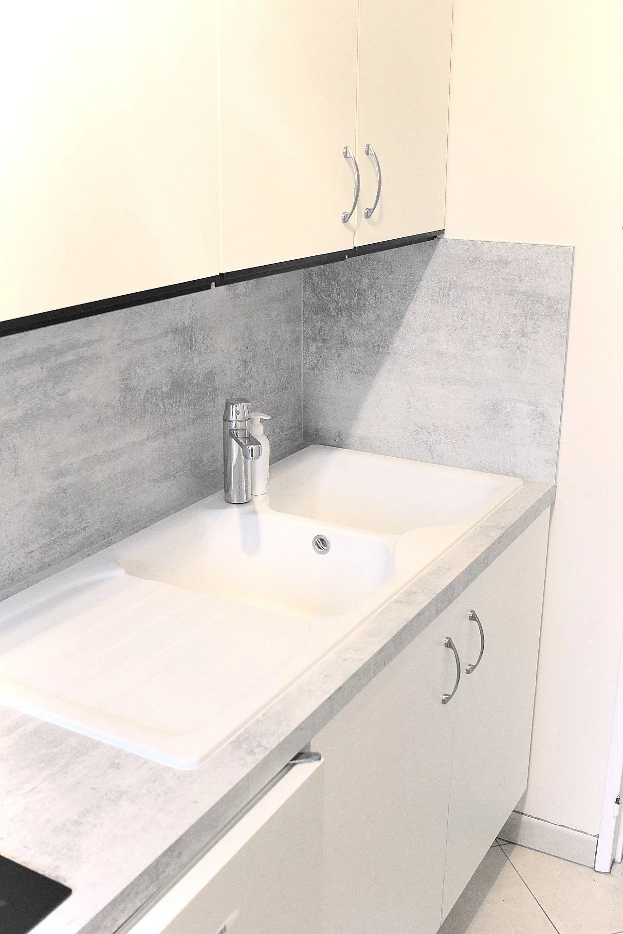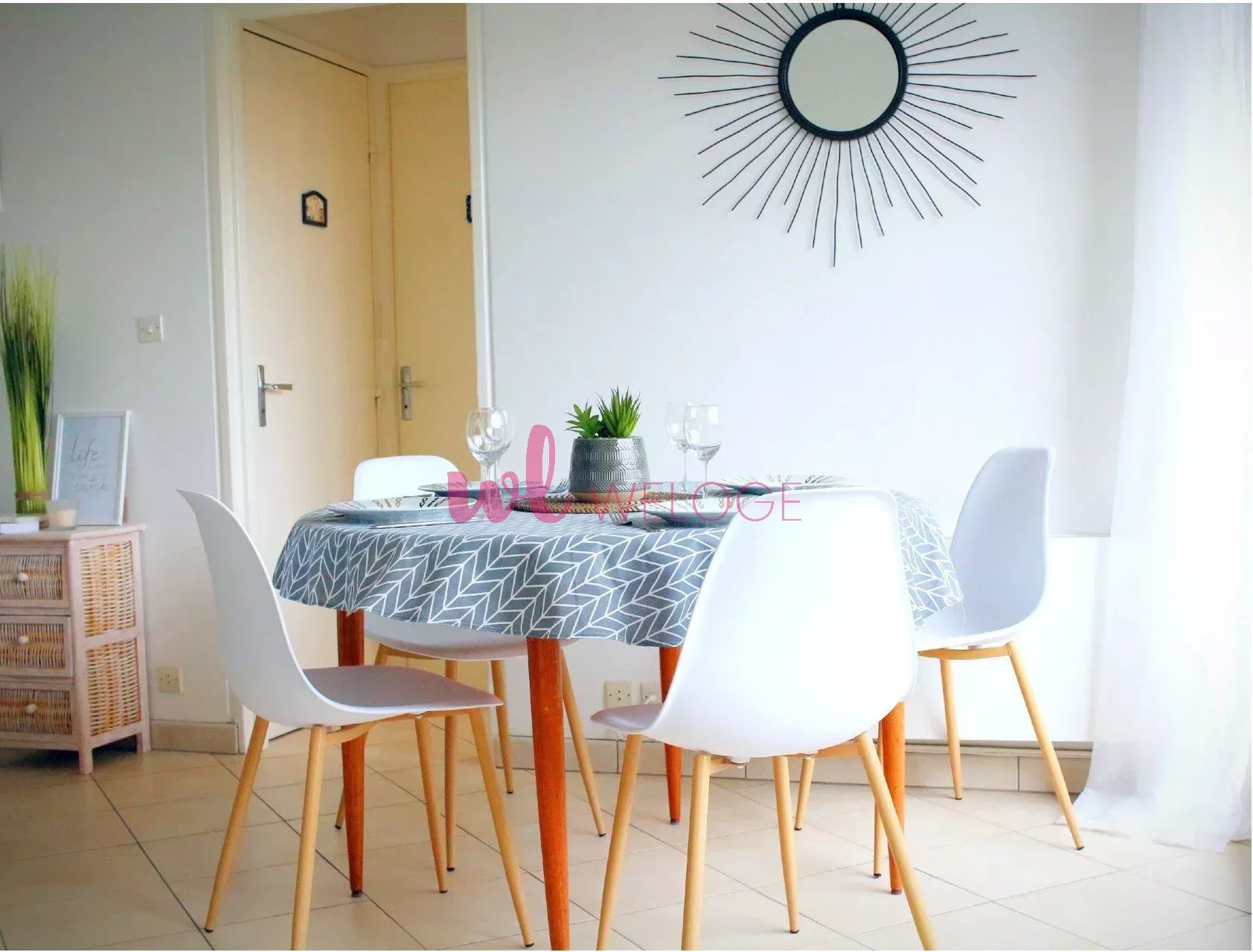 Une entrée, un séjour lumineux avec sa grande baie vitrée donnant sur la loggia, une cuisine équipée, un cellier, une chambre, une salle de bain refaite à neuve et toilettes séparés.