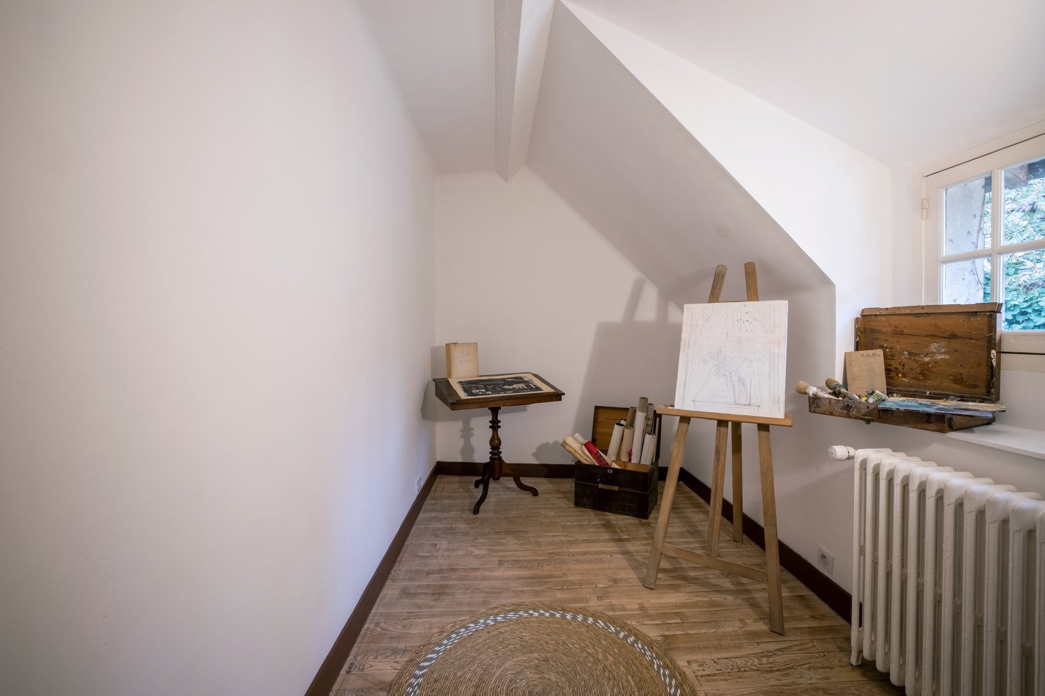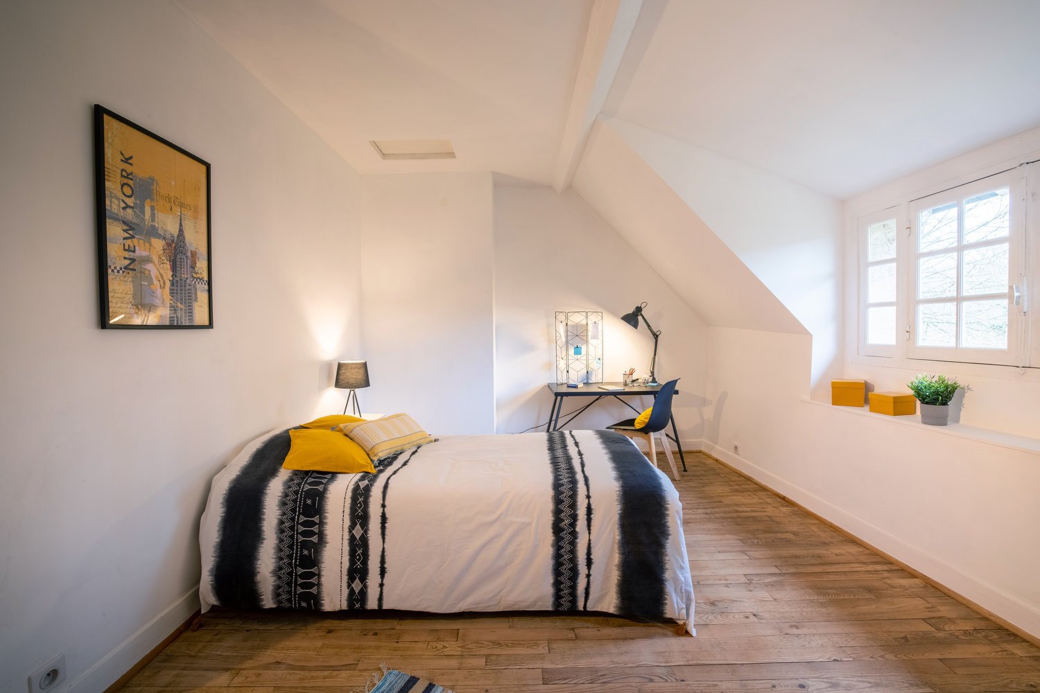 Au rez-de-chaussée : des toilettes indépendantes, un espace buanderie/chaufferie, une cuisine séparée, une salle à manger et un vaste salon avec sa cheminée majestueuse. A l’étage : nous retrouvons une salle de bain avec toilettes, 3 belles chambres de 15m², 16m² et 19m² ainsi qu’un bureau, le tout, entièrement parqueté. La vue sur le jardin de toutes les pièces à vivre ainsi que toutes les chambres apporte de la luminosité dans cette maison qui aspire à la sérénité.