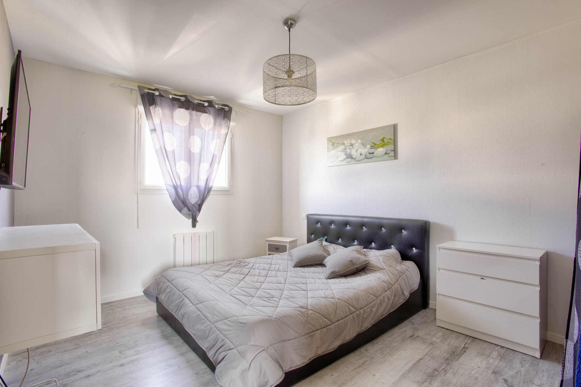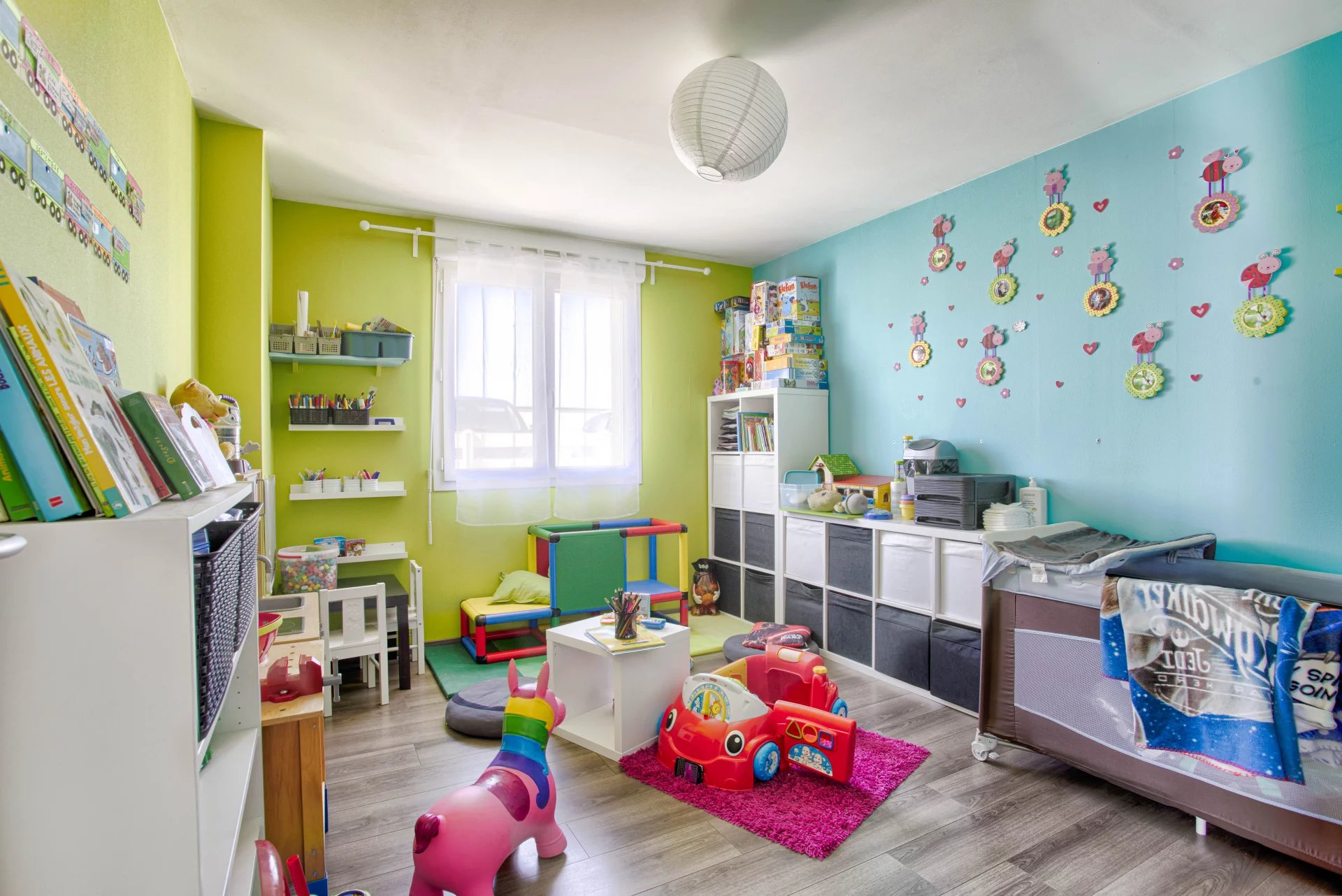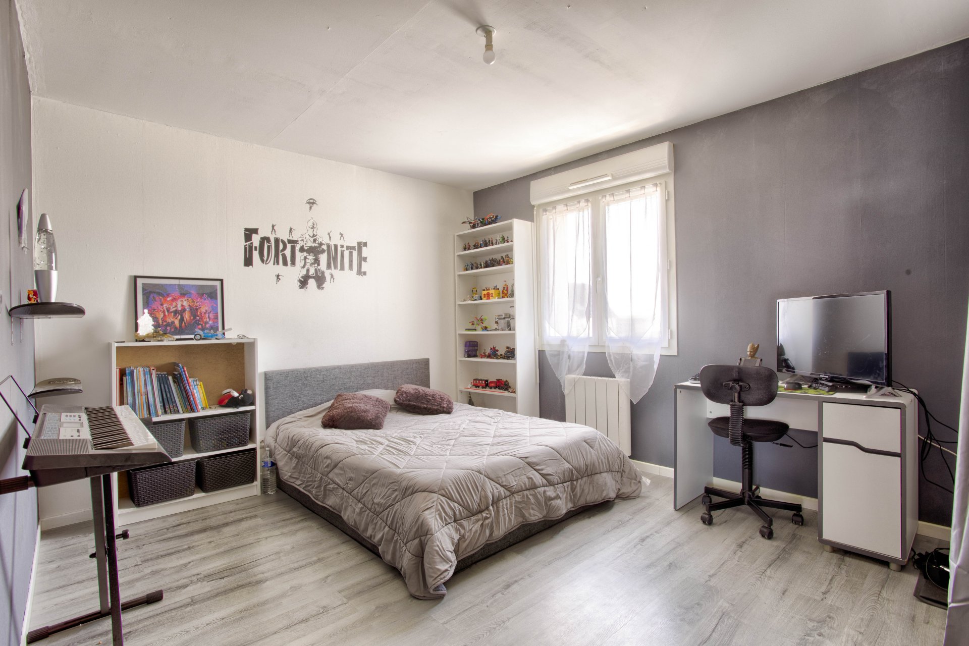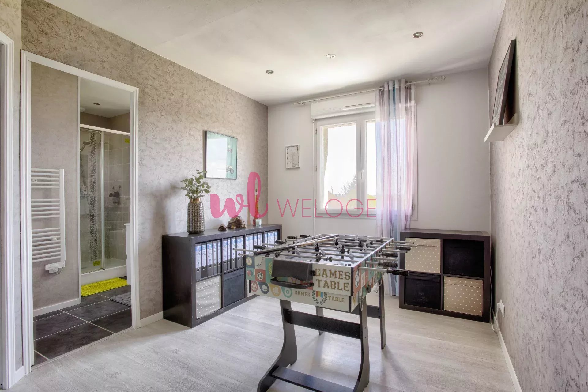 A l’étage : Un vaste Hall de 9m2 donnant accès à 3 belles chambres de 12m², 13m² et 14m² et une salle de bain avec toilettes (baignoire, douche et une double vasque).