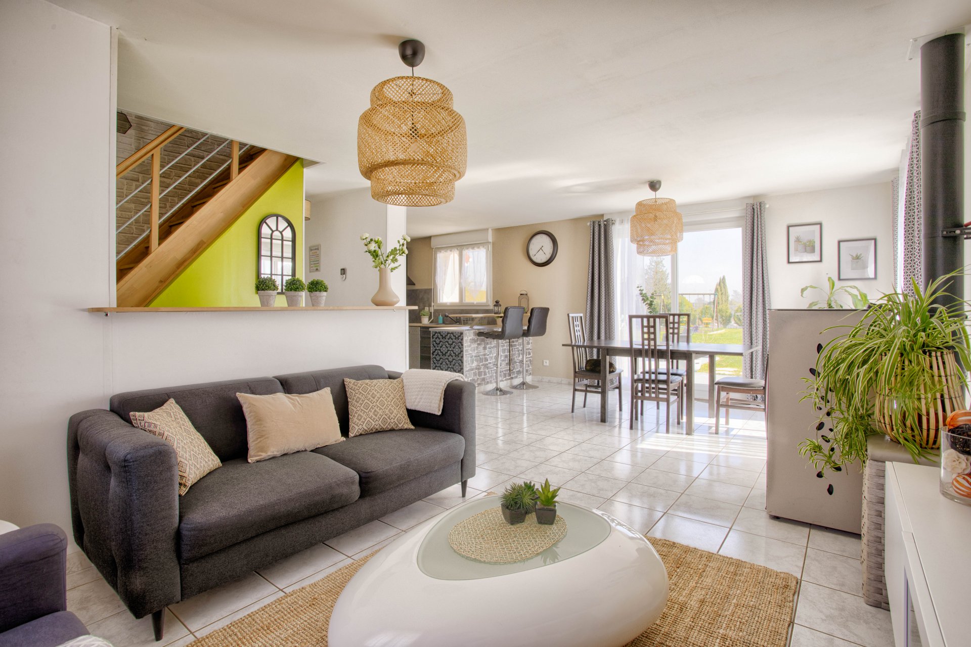 La vue sur le jardin de toutes les pièces à vivre ainsi que les chambres apportent de la luminosité dans cette maison qui aspire à la sérénité.