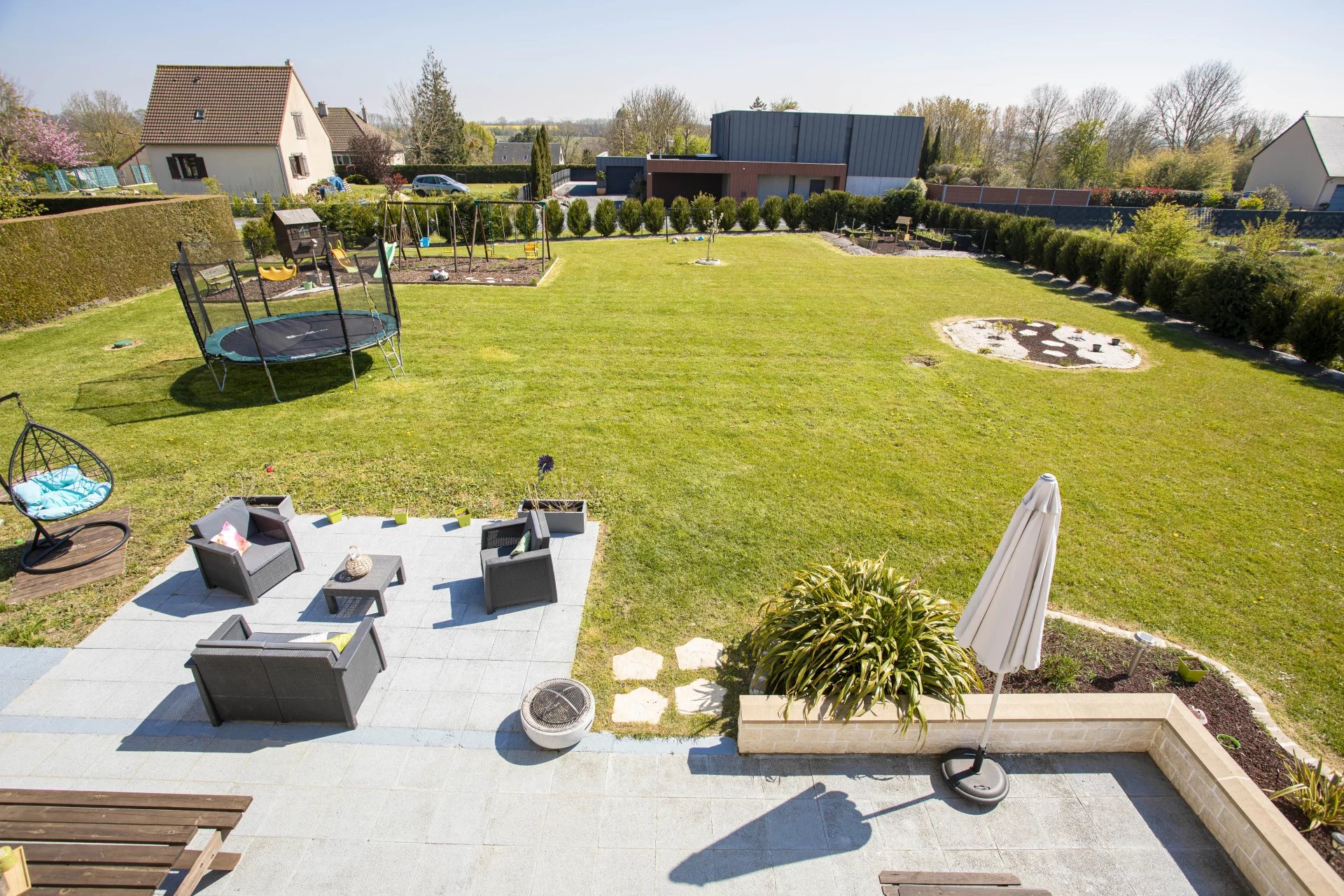 A l’extérieur : Un beau Jardin engazonné, agencé, clôturé 1 512m2 exposé plein sud , sans vis-à-vis. une belle terrasse ensoleillée vient agrémenter ce joli bien.