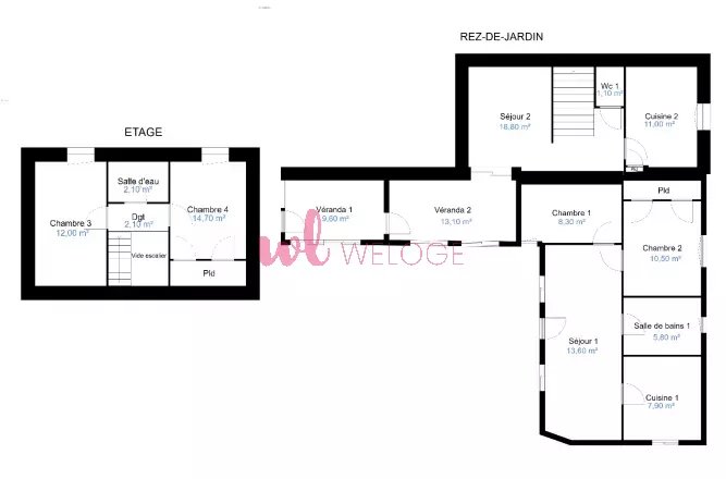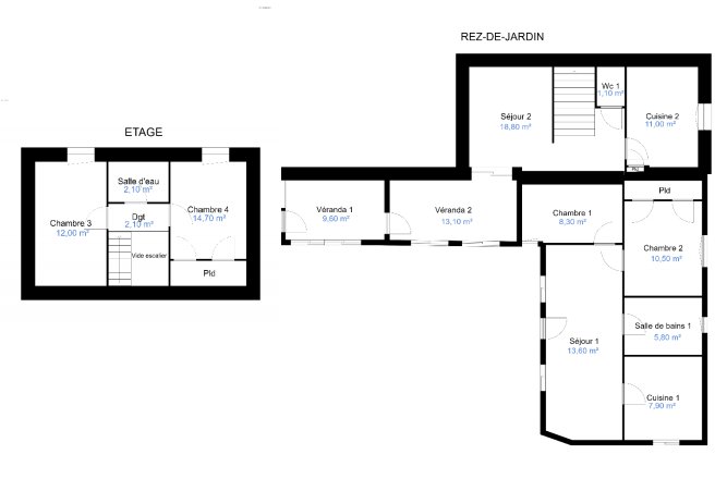 – une habitation de 84,5m2 sur deux niveaux avec salon, salle à manger, cuisine, deux chambres et une salle d’eau.