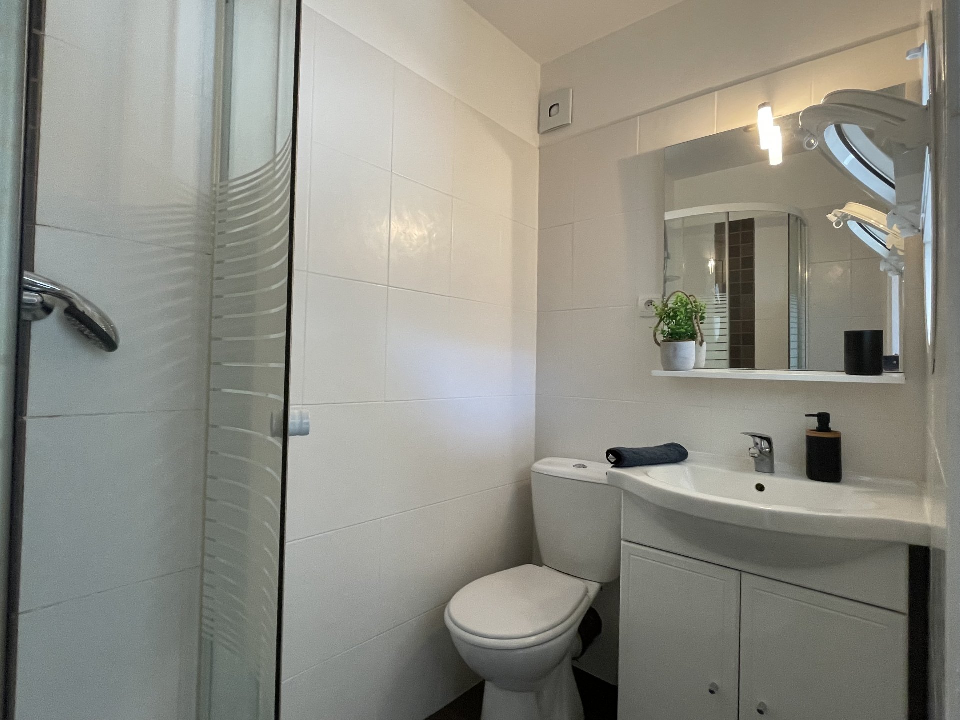 – une salle de douche avec un toilette