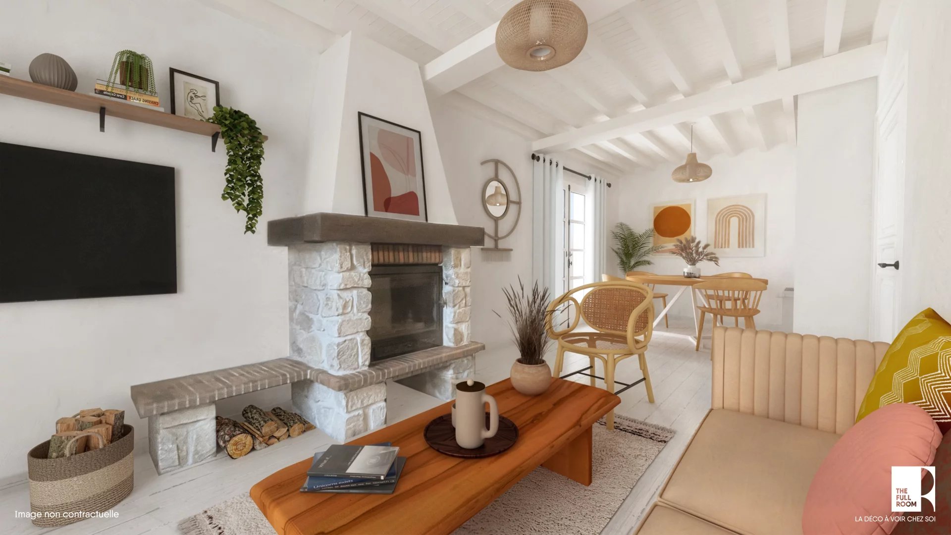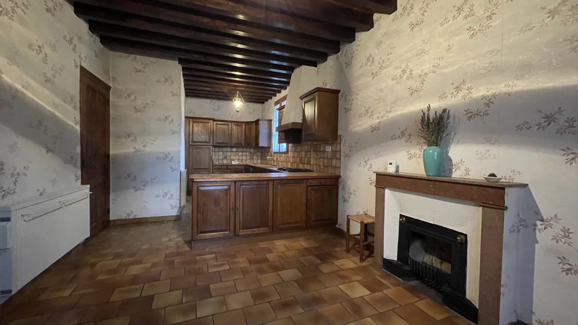 Elle se compose au RDC d’un grand salon équipé d’une belle cheminée et d’une vaste cuisine salle à manger