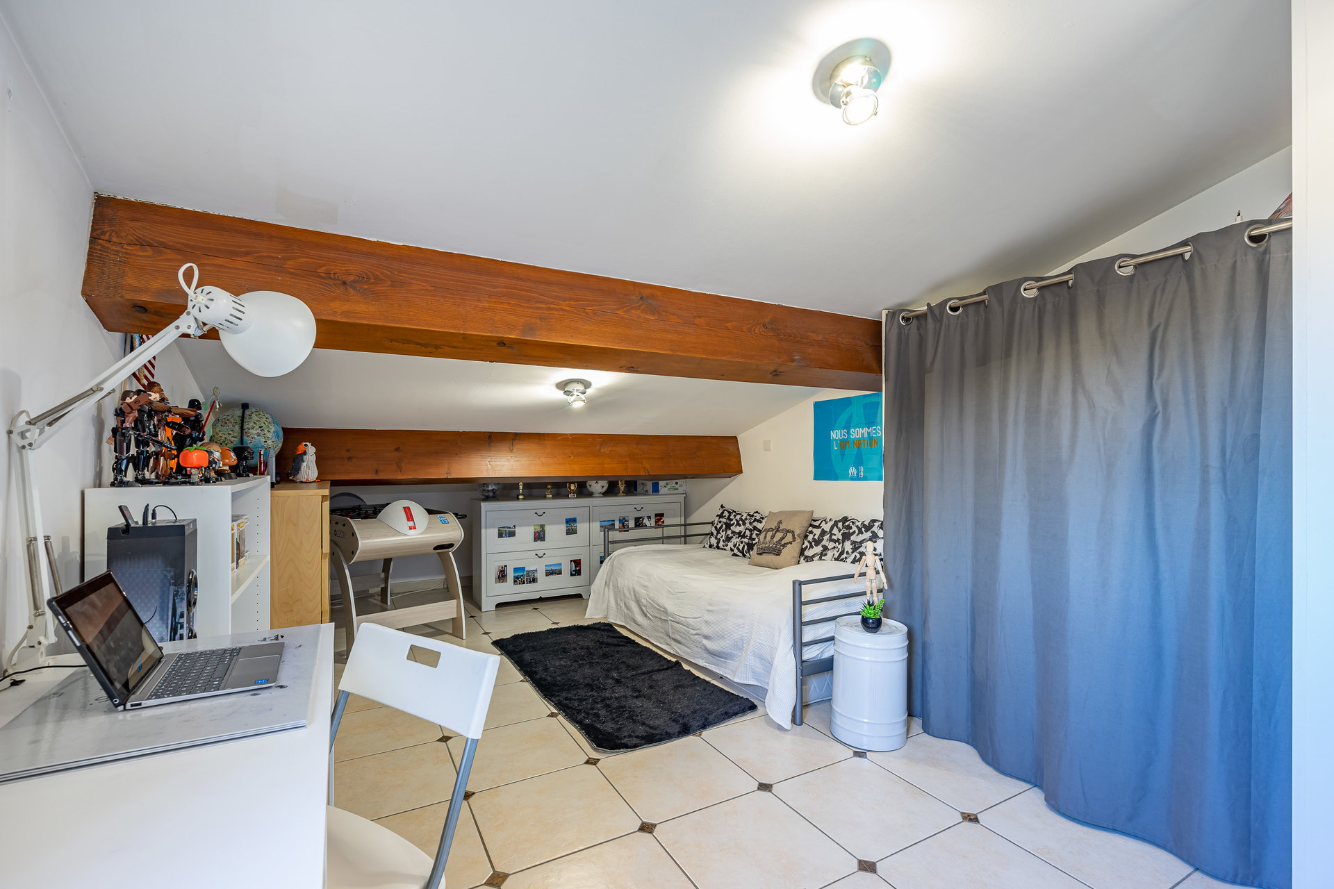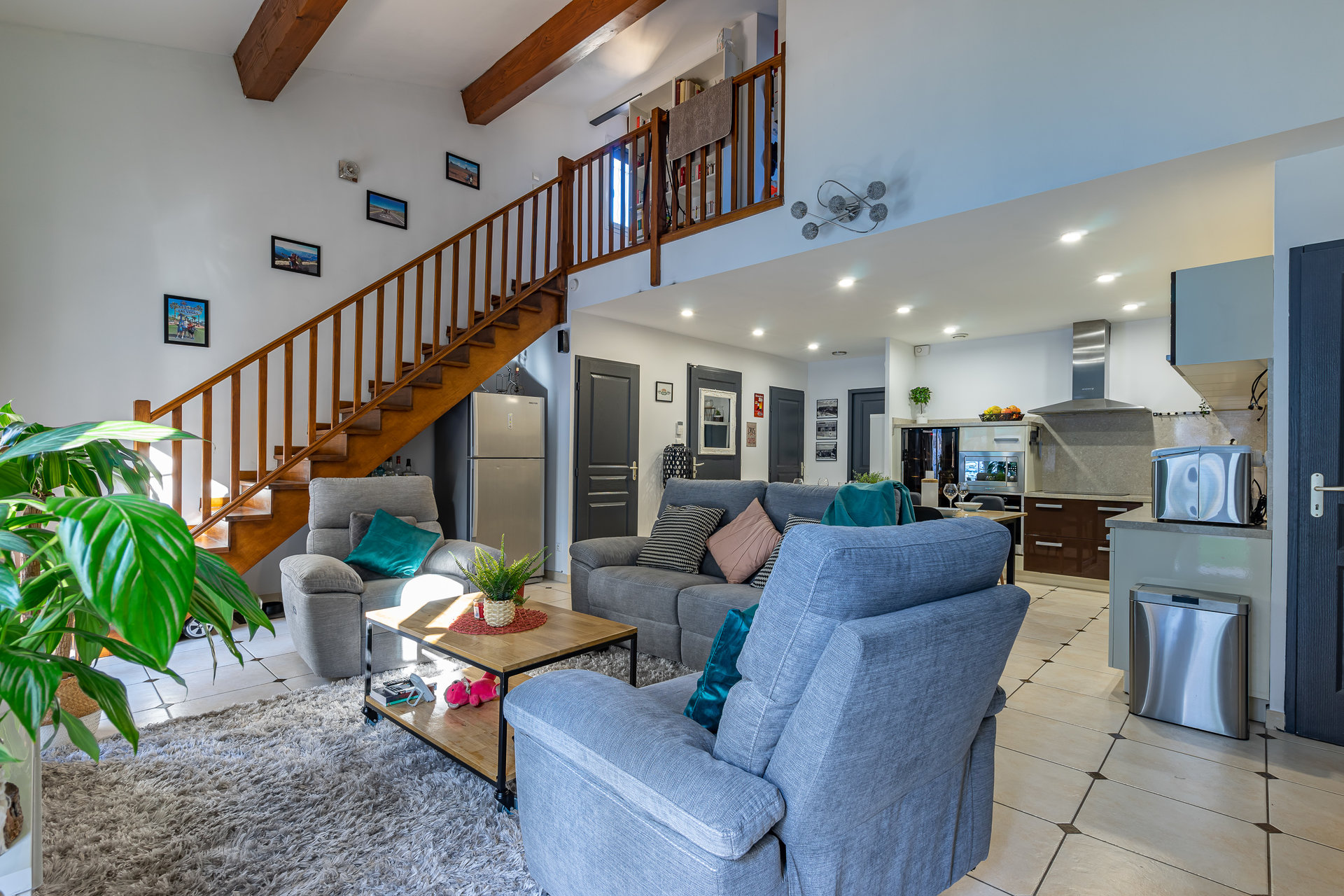 Dans cette maison d’une superficie de 95 m2, vous profiterez d’une cuisine ouverte toute équipée, d’un séjour avec une belle hauteur sous plafond, une suite parentale avec placards intégrés et sa salle de bain, ainsi que des toilettes séparés. En mezzanine, vous disposerez de 2 chambres dont une avec salle de douche et toilette.