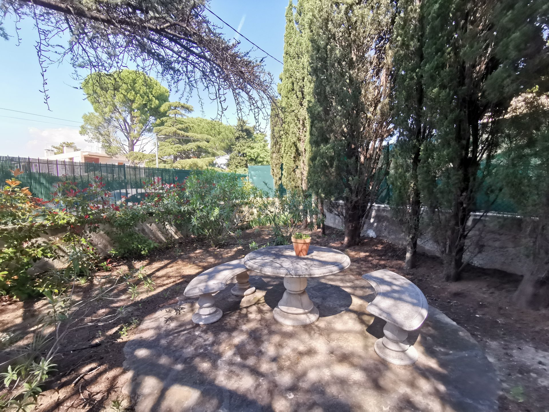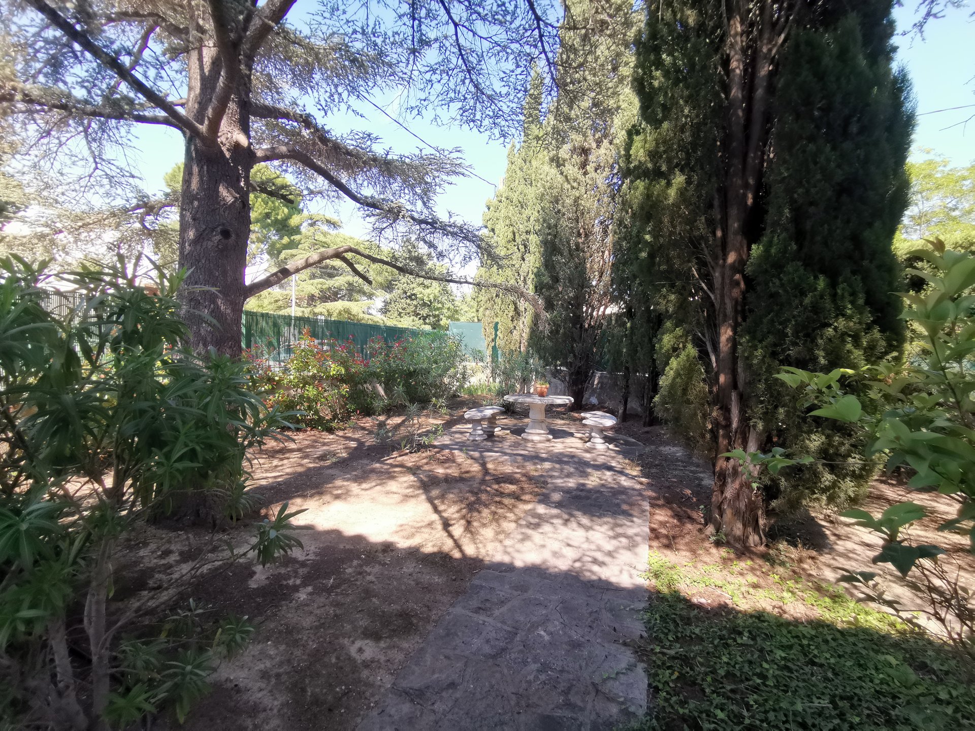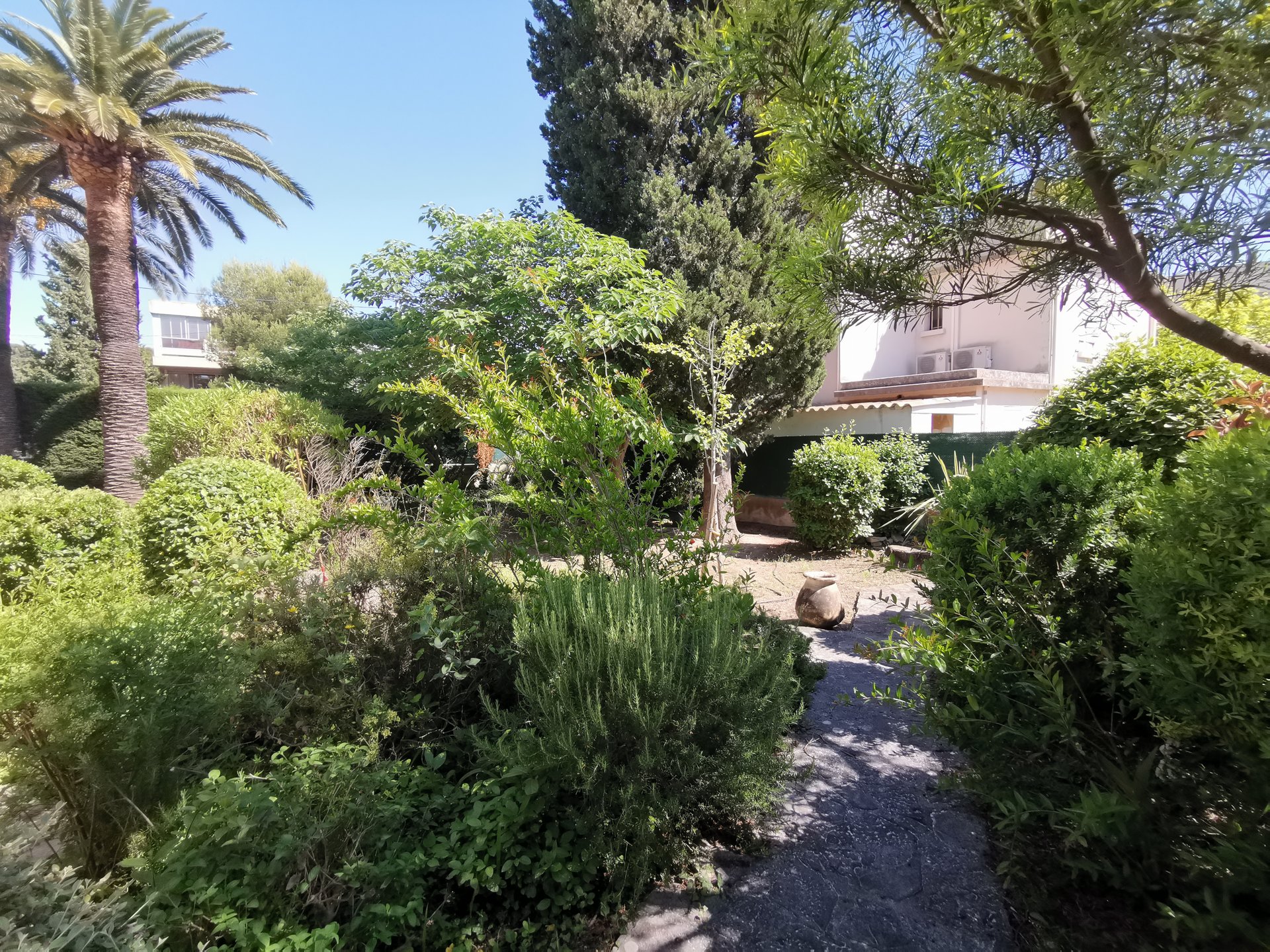 Son jardin intime très bien entretenu, entouré de haies vous invite à la détente bercé par l’ombre de ses arbres.