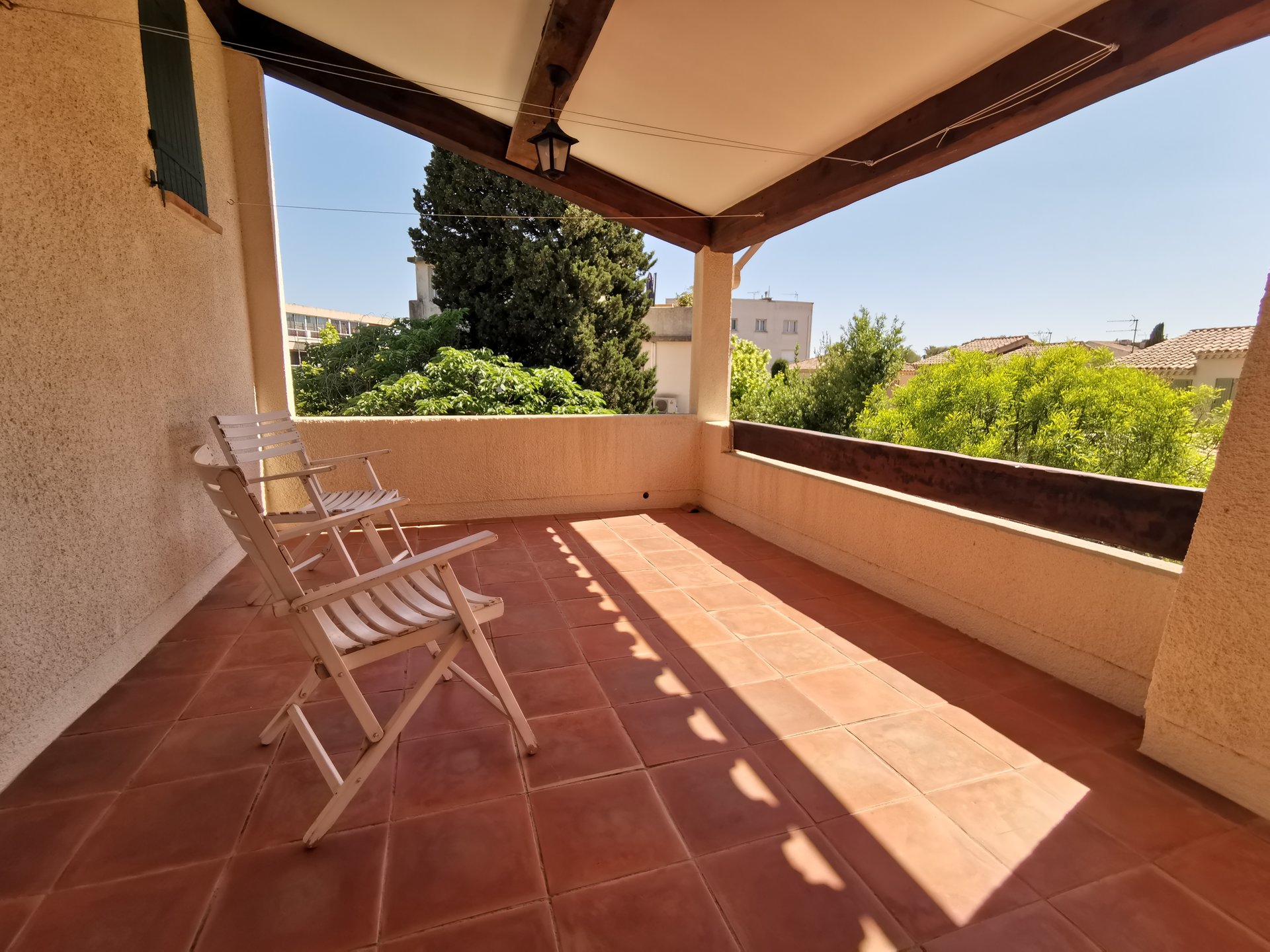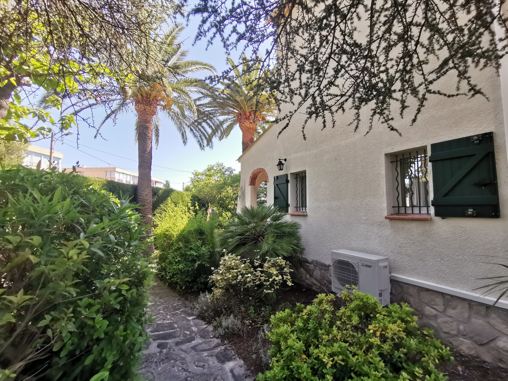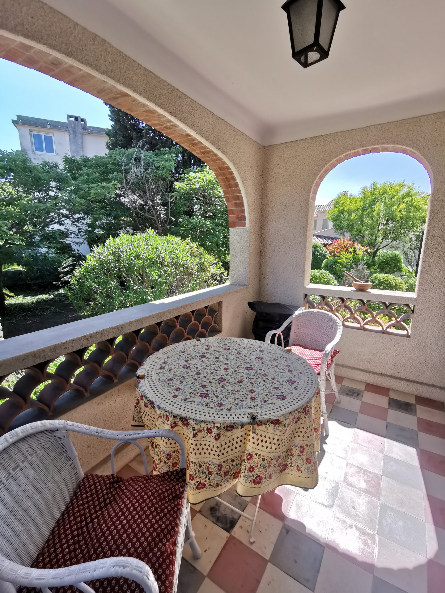 Son jardin intime très bien entretenu, entouré de haies vous invite à la détente bercé par l’ombre de ses arbres.