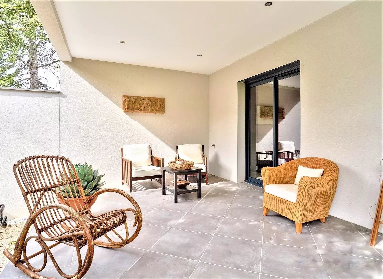 sol chauffant / rafraîchissant, aspiration centralisée, huisserie et volets roulants en aluminium, double vitrage, portail électrique, visiophone, double garage fermé avec porte automatique.