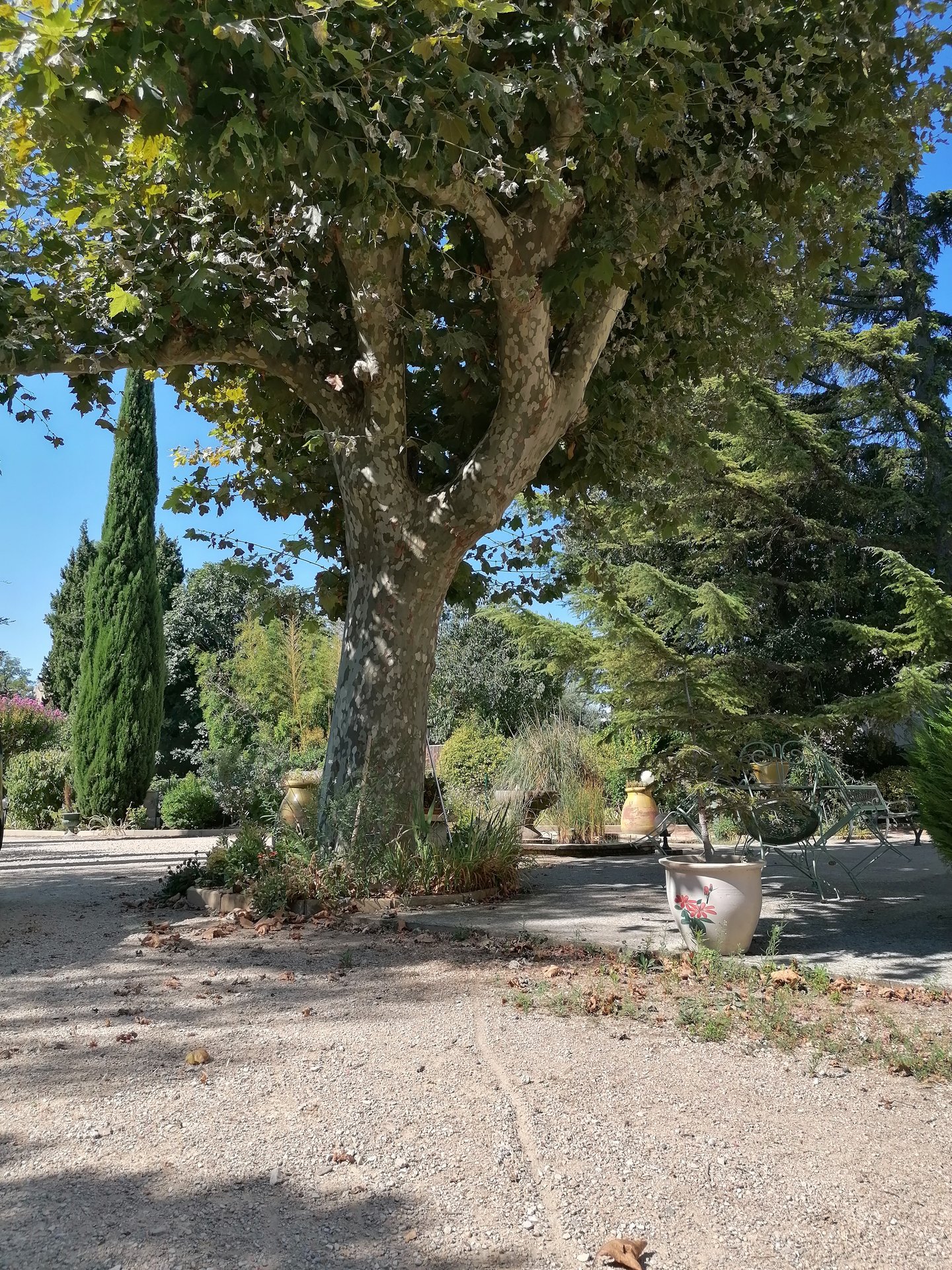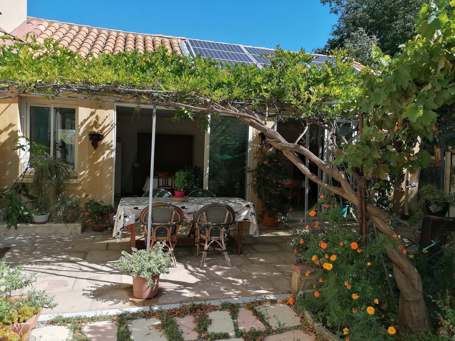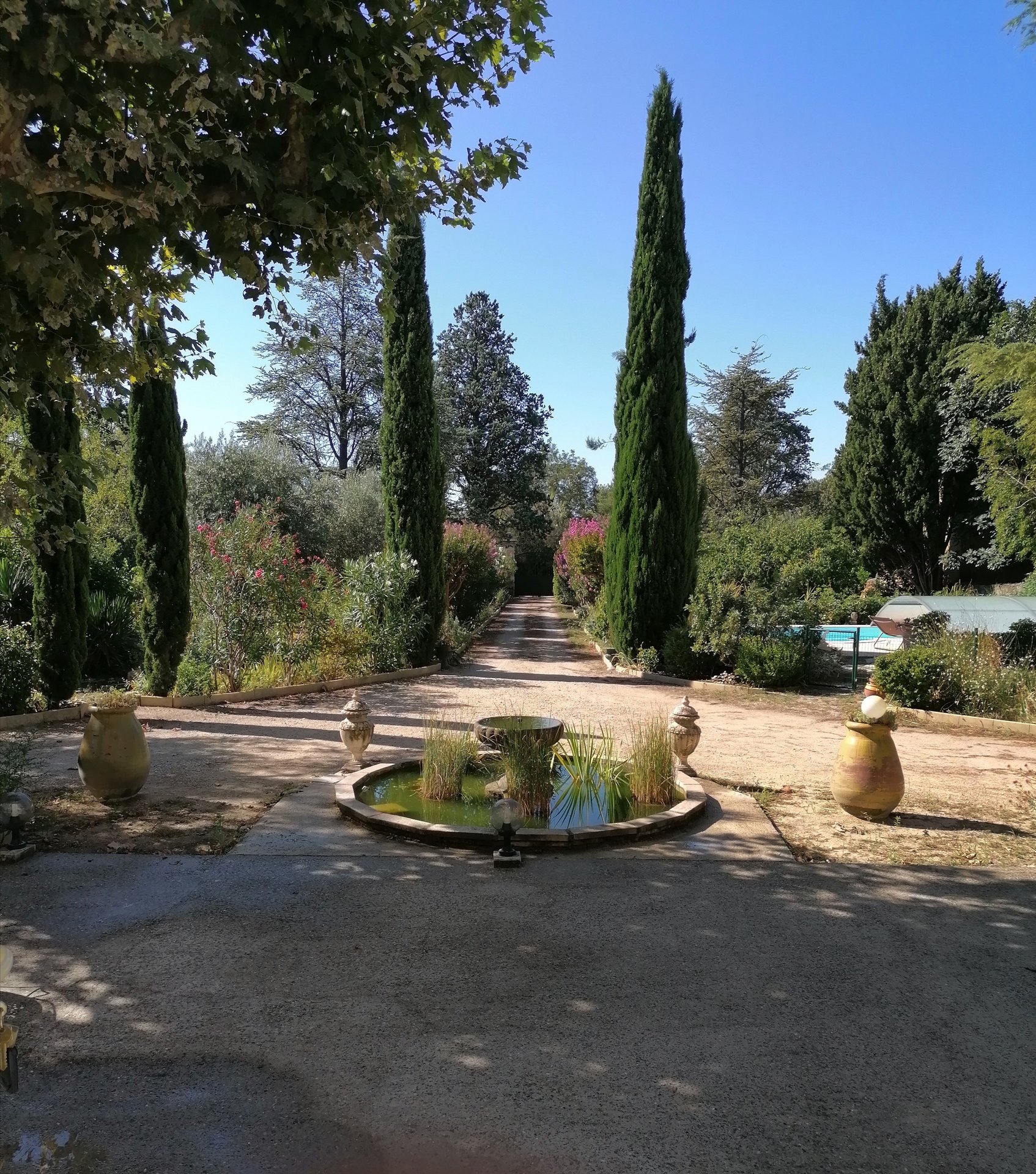 Le jardin comporte un potager, des oliviers, des pieds de vigne et des arbres fruitiers.
