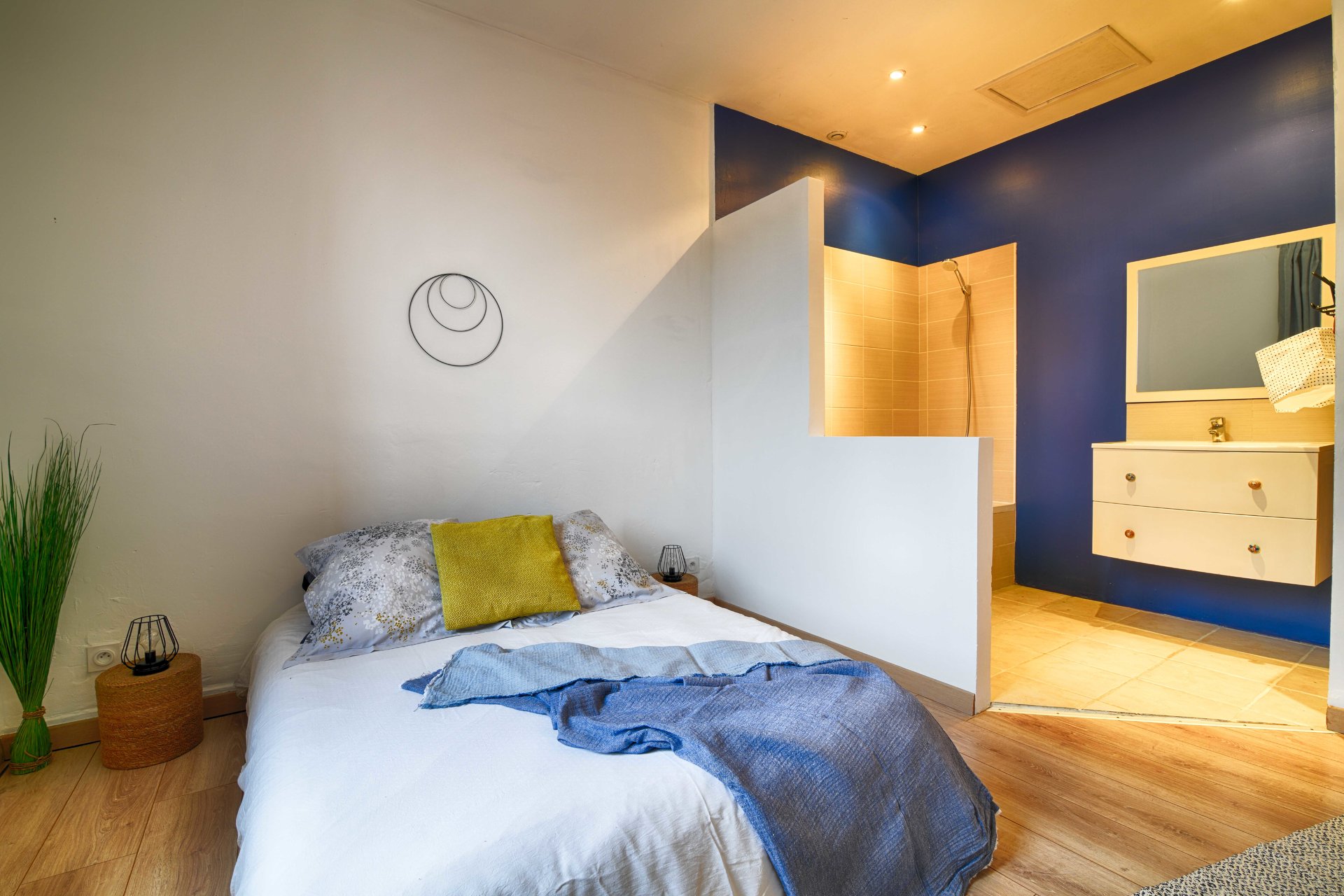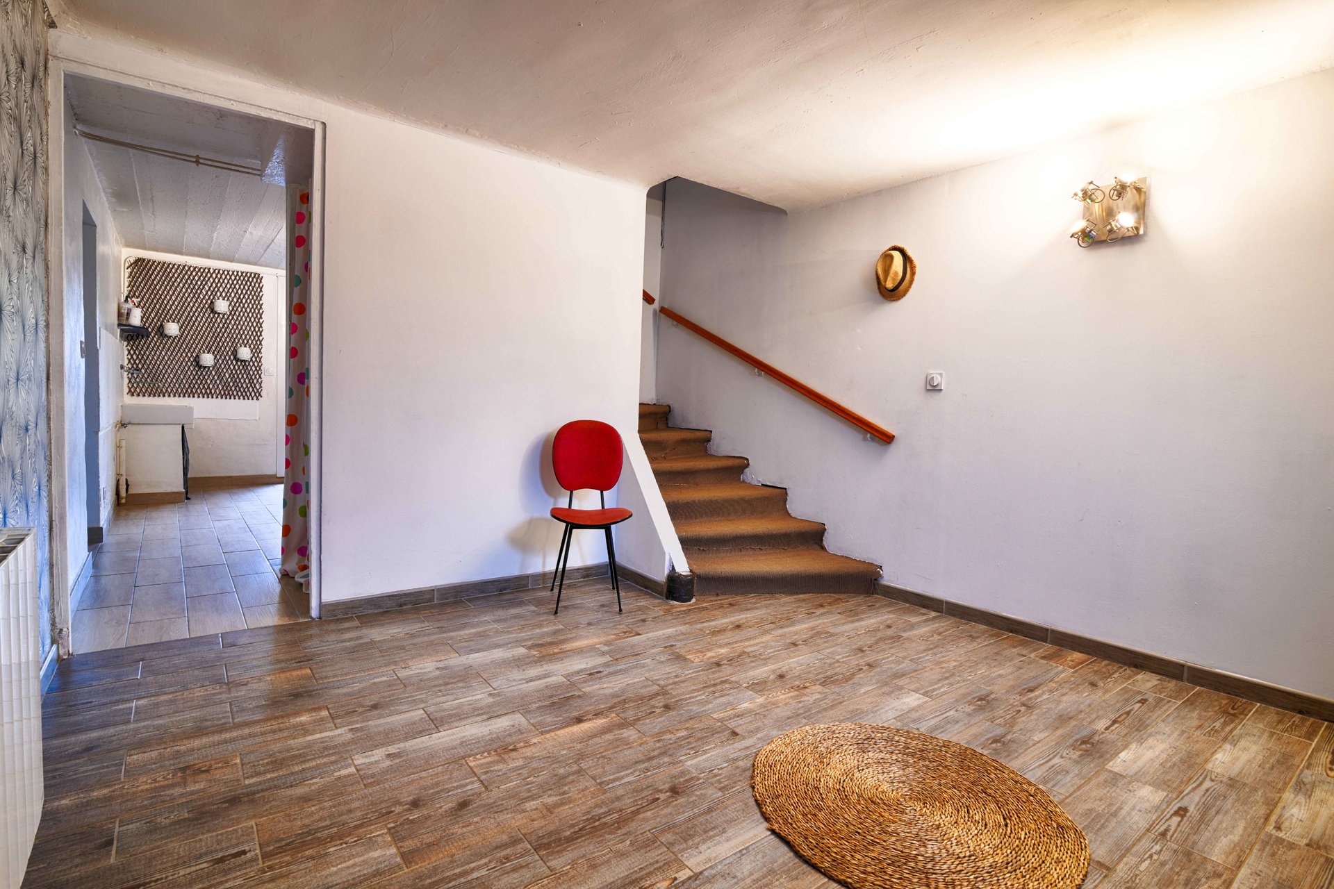 Grande entrée donnant sur espace de rangement et buanderie avec accès au jardin. 2 chambres au RDC avec salle de douche.