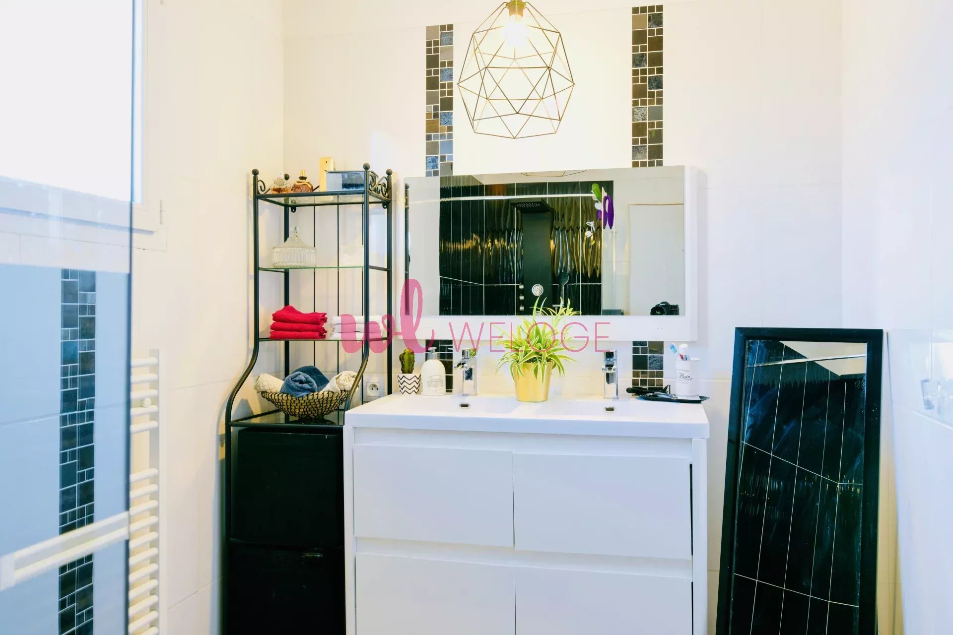 À l’étage, vous trouverez 3 chambres et une salle de bain avec double vasque et douche à l’italienne.