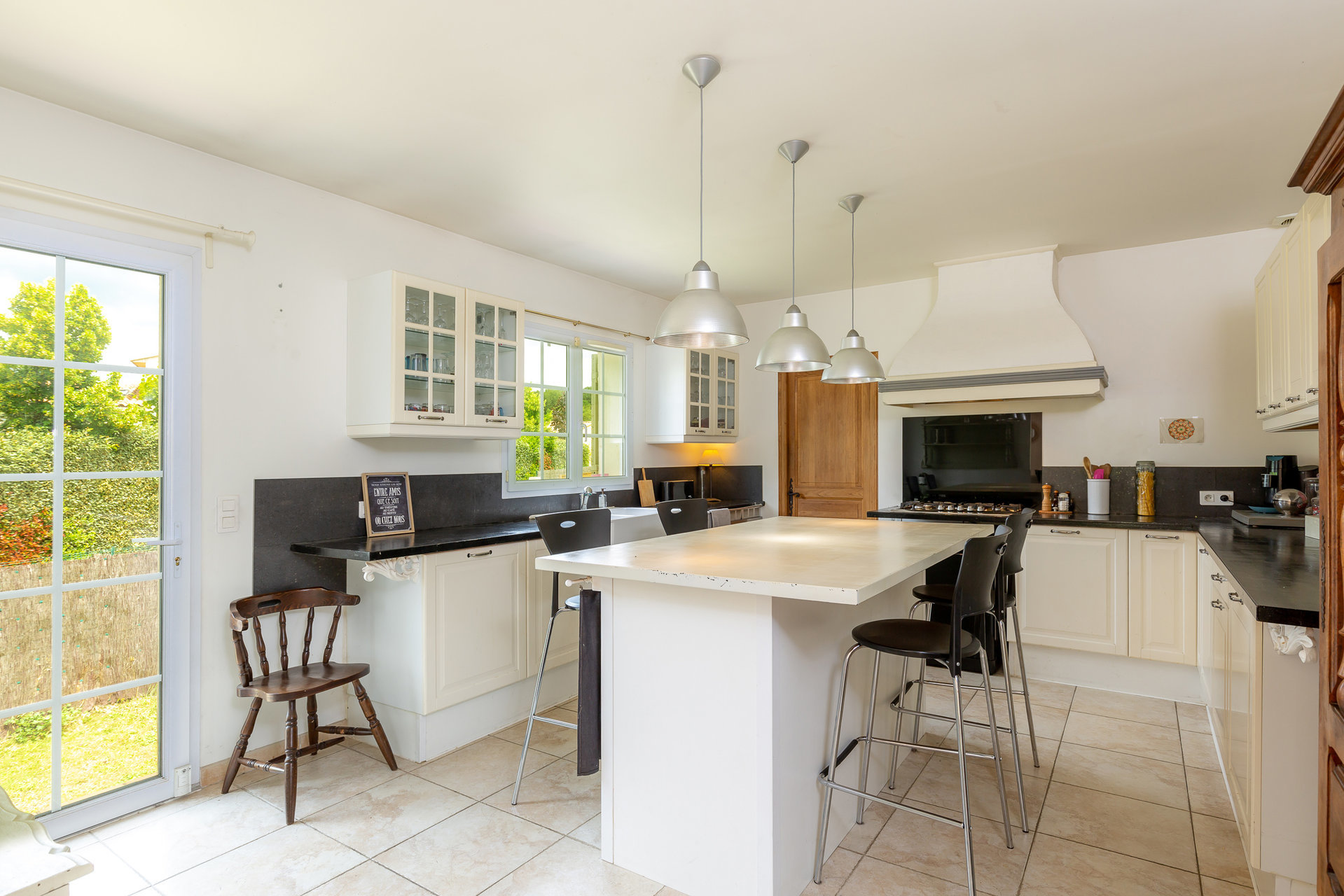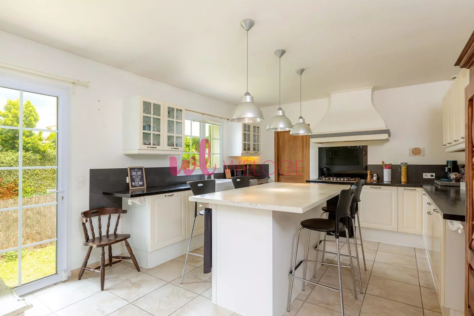 Cette maison de belle facture, lumineuse (exposée sud), vous offre de très beaux volumes: vous entrez dans un séjour de 47m² donnant sur votre jardin par une grande baie vitrée qui baigne la pièce de lumière et attenant à une cuisine semi-ouverte équipée de 20m² avec toute la convivialité du grand ilot central.