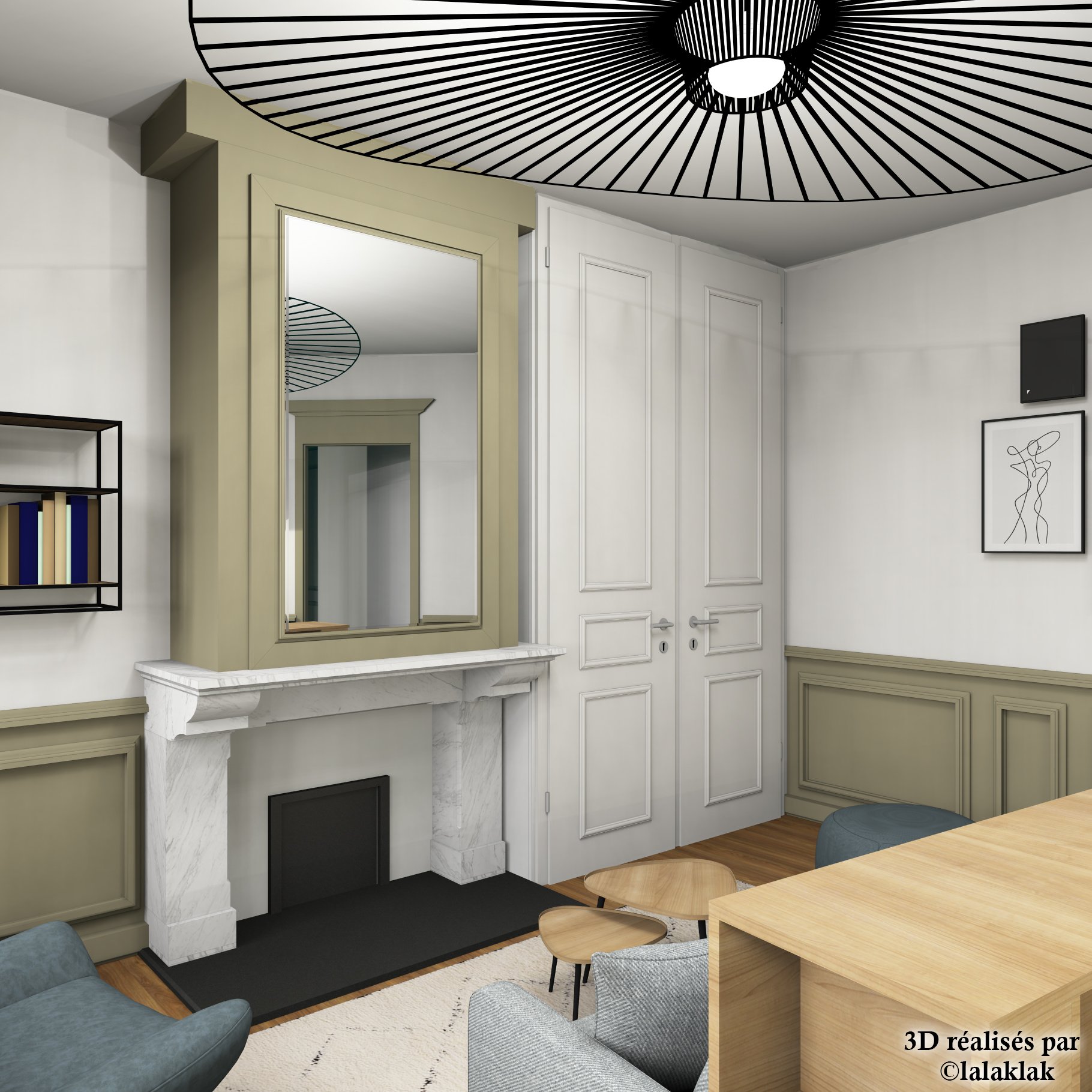 Ses atouts : son cachet avec sa cheminée en marbre, ses moulures, sa belle hauteur sous plafond, son emplacement, et sa luminosité.