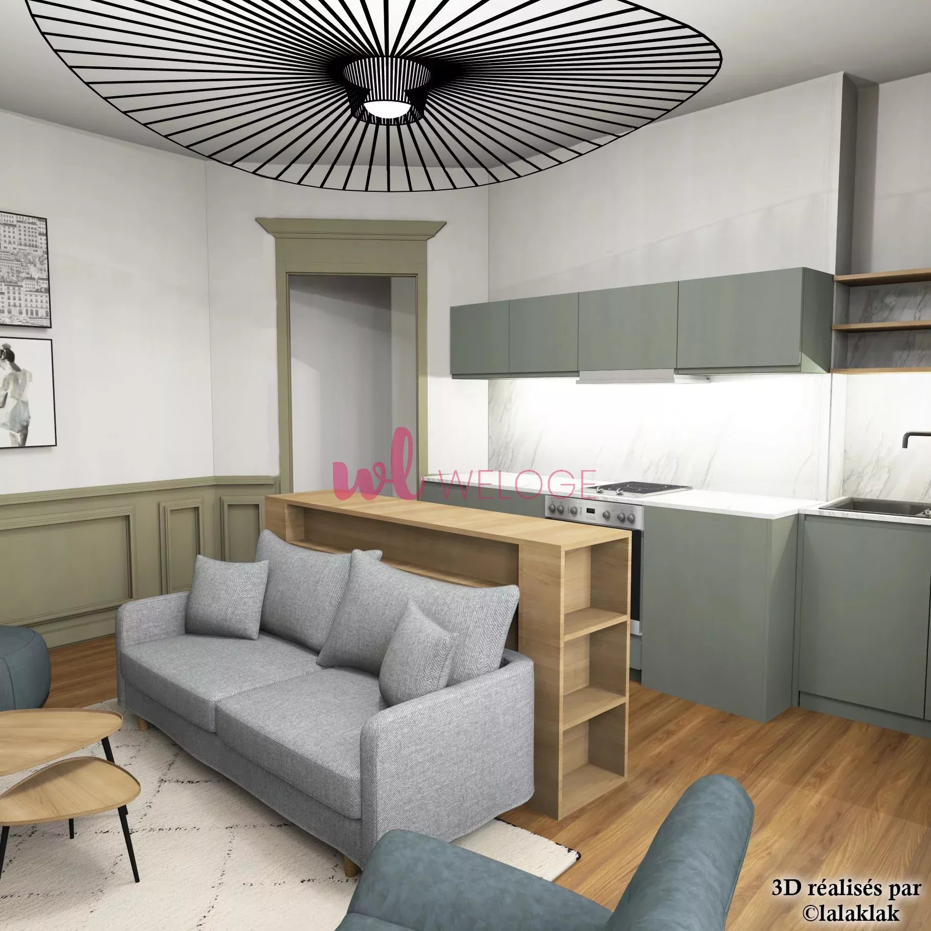 Le bien peut facilement être réagencé, la cuisine peut devenir une chambre séparée avec sa salle de bain et la grande pièce accueillir un espace cuisine ouvert sur le salon. Photos 3D non contractuelles d’une rénovation possible jointe.