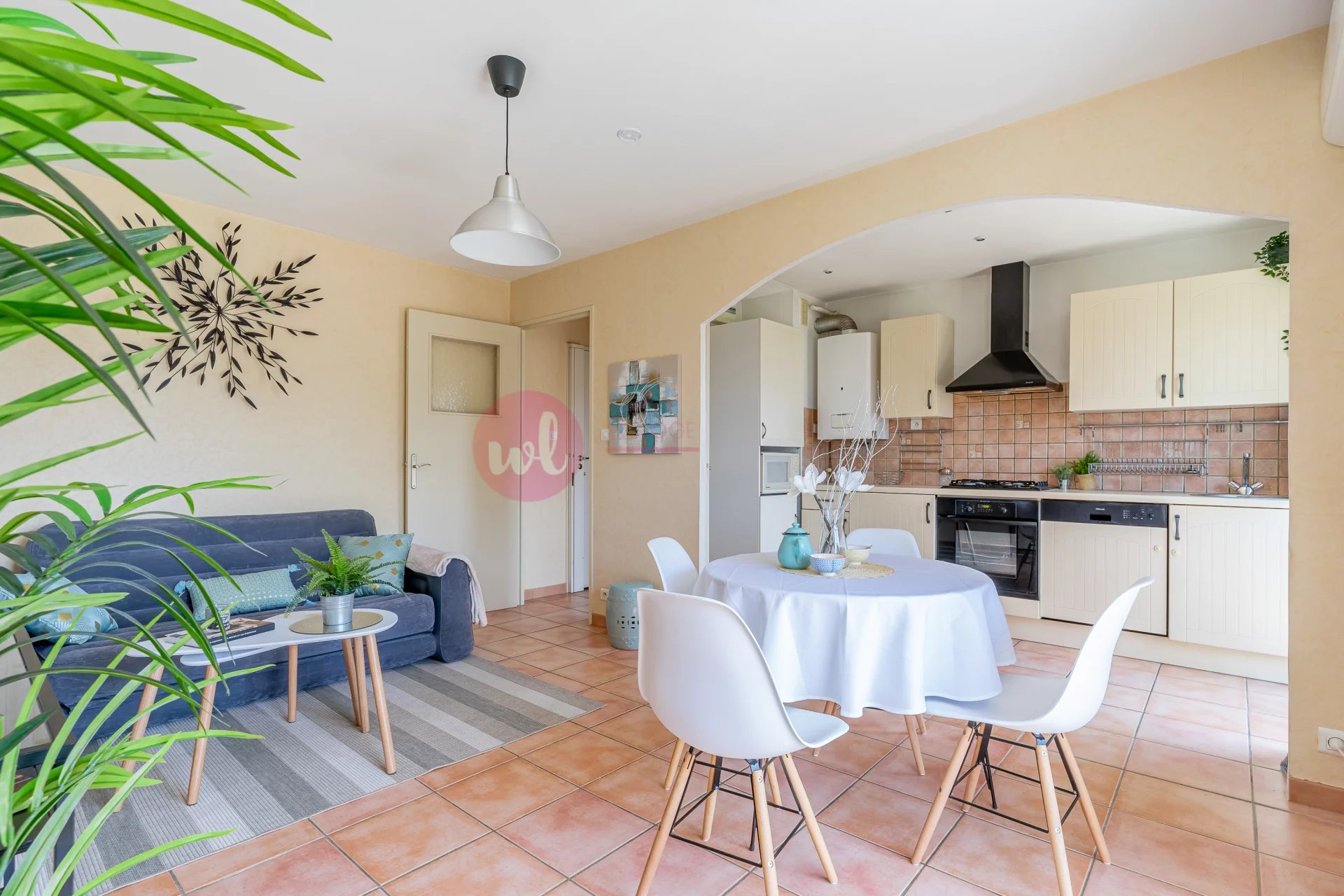Vous profiterez des couchers de soleil sur la terrasse attenante au séjour exposée Sud Ouest.