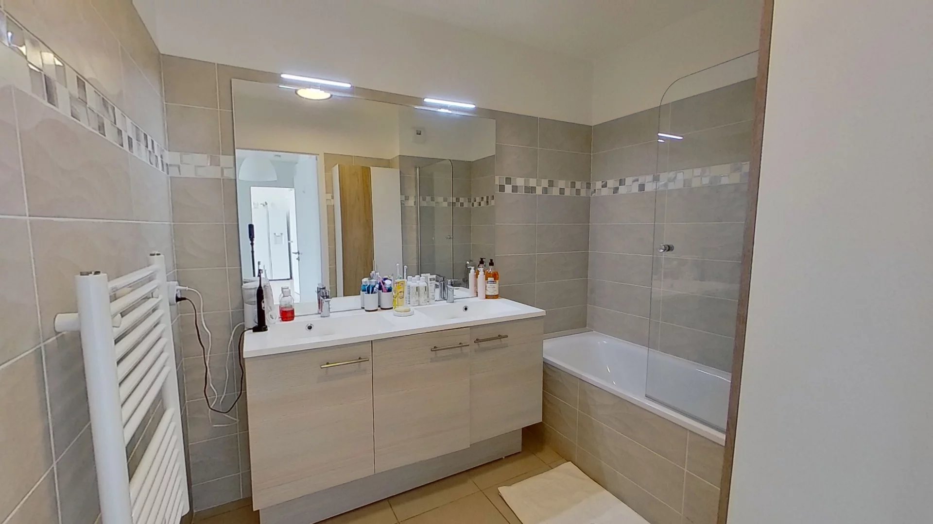 Vous apprécierez la luminosité de cet appartement orientée SUD-OUEST , il dispose d’une partie jour avec sa cuisine équipée, d’une partie nuit distribuant rangements, grand WC indépendant, salle de bain avec baignoire et double vasque, 2 belles chambres.