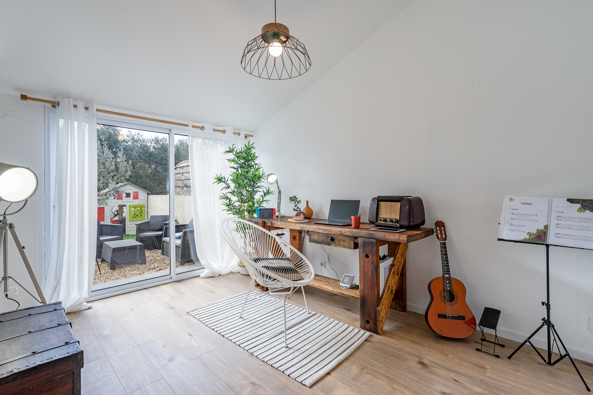 Maison lumineuse, offrant des prestations de standing et bénéficiant d’une terrasse et d’un jardin confortable exposé sud ainsi qu’un petit atelier et places de parking sont aussi à votre disposition.