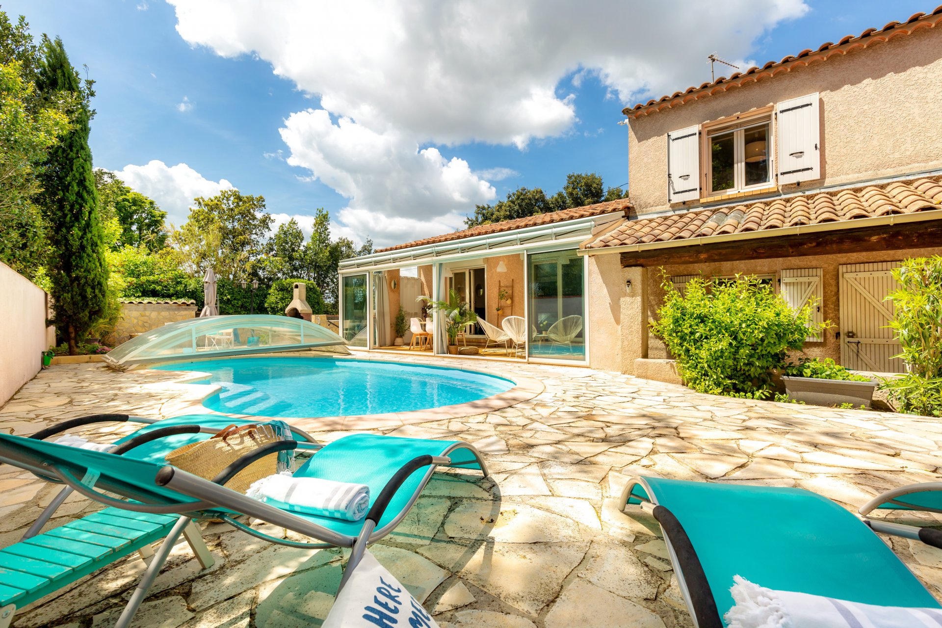 SOUS COMPROMIS : Votre agent Weloge vous propose à la vente en exclusivité, dans environnement privilégié au calme et sans vis-à- vis une maison individuelle de 143 m2 comprenant une véranda, édifiée sur un terrain de 550 m2 avec piscine, barbecue, espace jeux d’enfants, cabanon et local vélos. La partie jour se compose d’un superbe séjour de 47 m2 avec cheminée et cuisine ouverte, prolongé de la véranda idéale pour vous prélasser et apprécier la vue sur le jardin et la piscine.