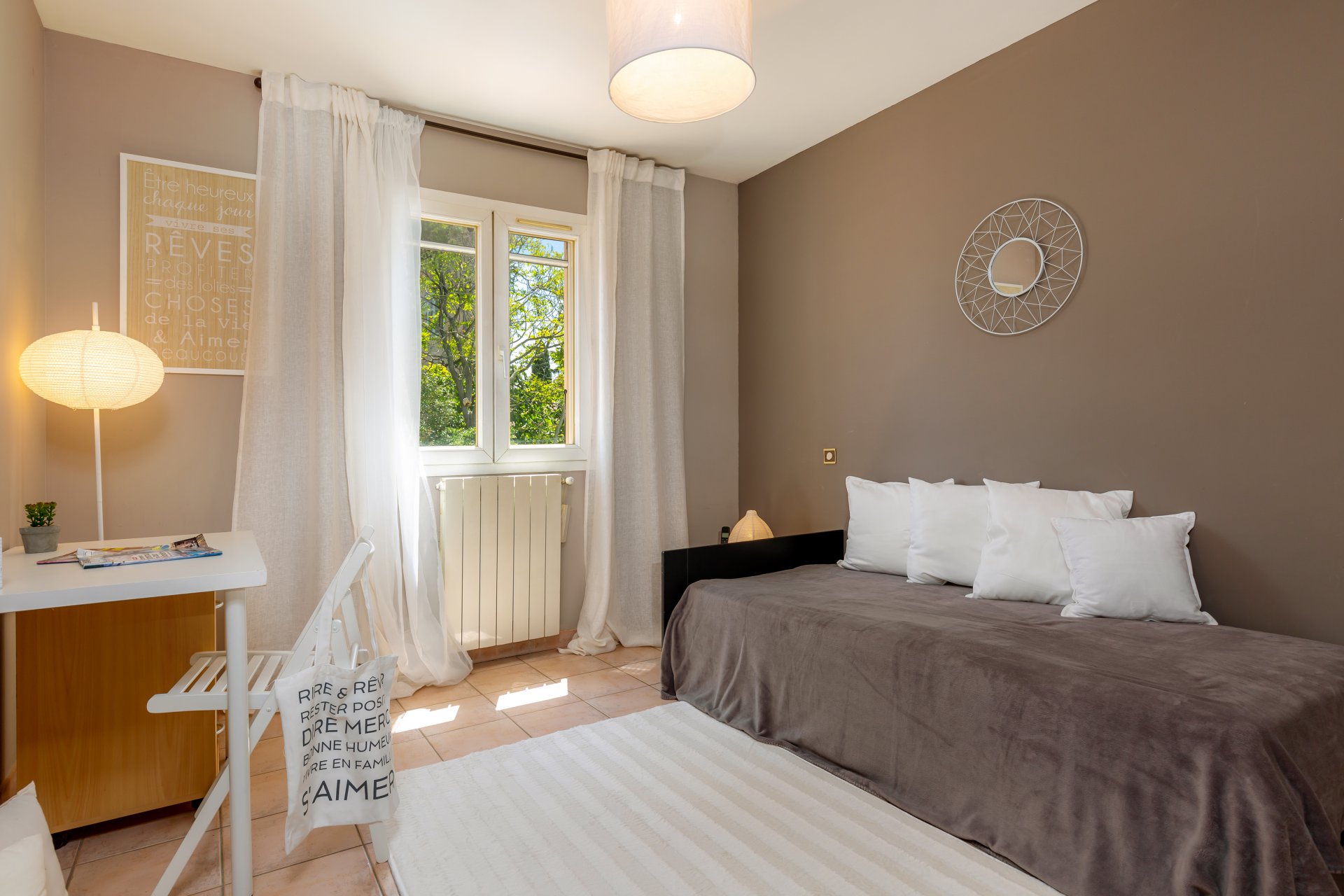 L’espace nuit se compose de trois chambres spacieuses offrant une vue dégagée sur la verdure , une grande salle de bains avec baignoire et douche, des toilettes indépendantes et de nombreux placards et aménagements fonctionnels.